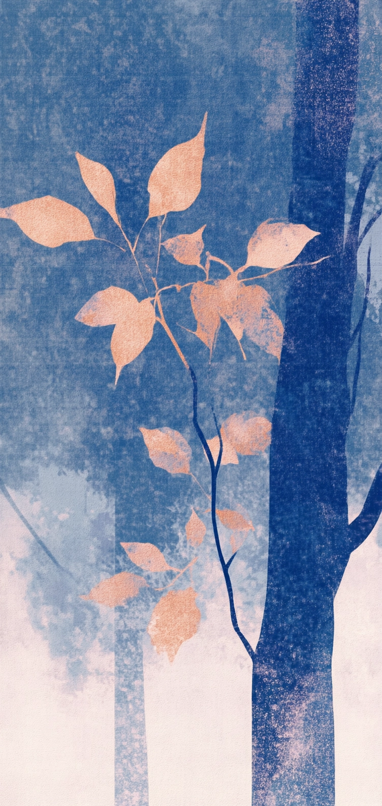 Soft blue tones with peach accents and gentle white highlights create an ethereal and tranquil atmosphere.