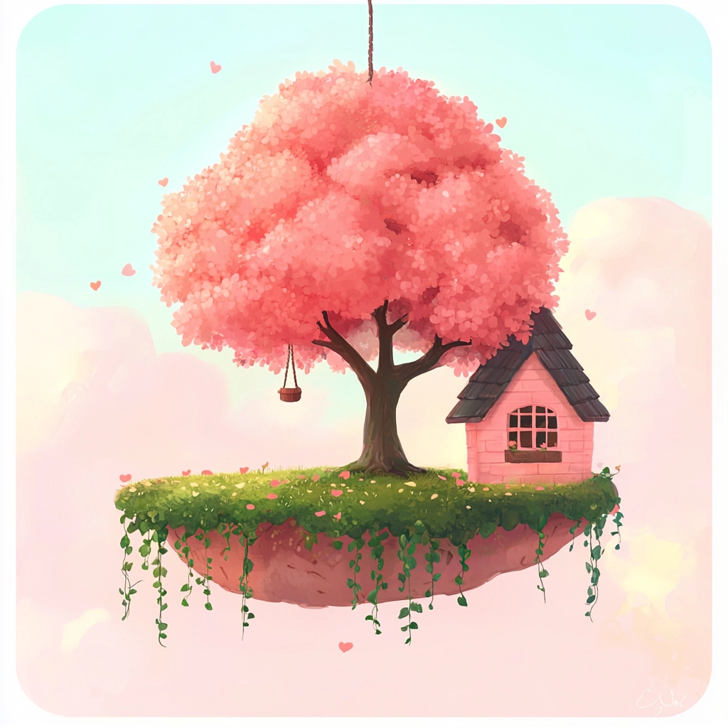 The lighting is soft and evenly distributed, enhancing the vibrant color palette. Elements are well-defined, with a focus on smooth textures and depth depicted through the gentle gradients. A strong sense of space gives clarity and separation to each part.