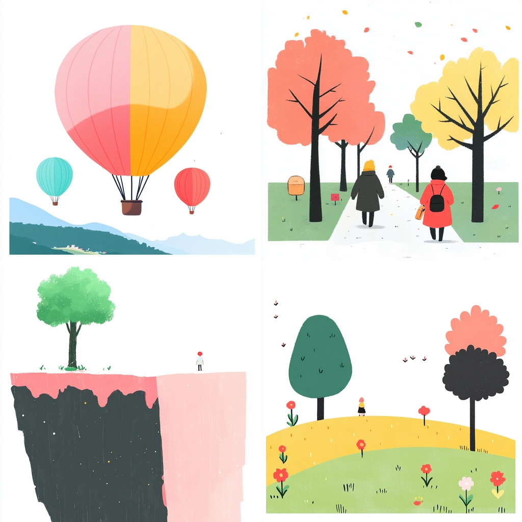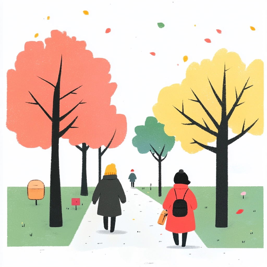 Pastel colors merge with flat forms for playful simplicity.