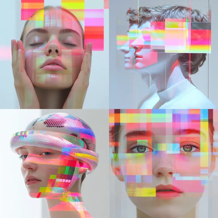 Soft lighting enhances minimal yet expressive textures with pastel tones, creating a playful spatial clarity. Bold contrasts are achieved through strategic use of black and bright hues.