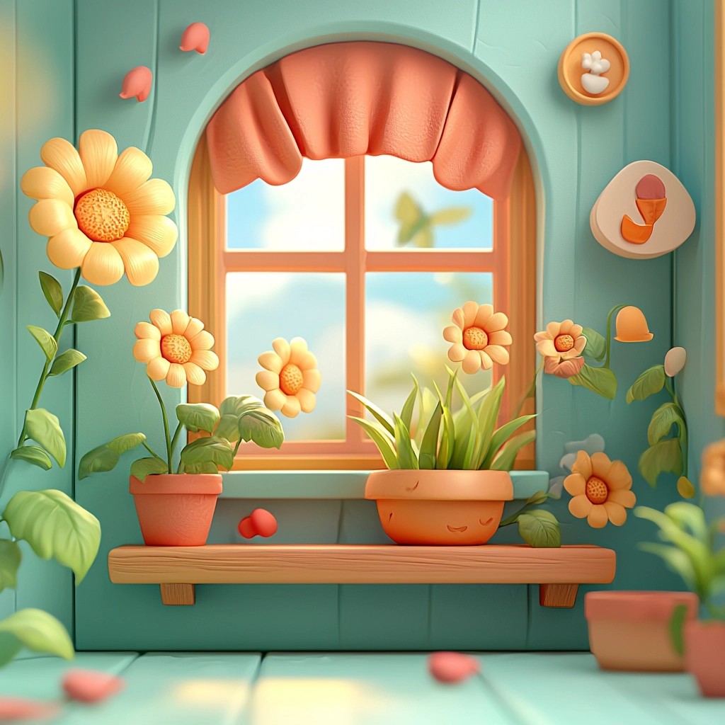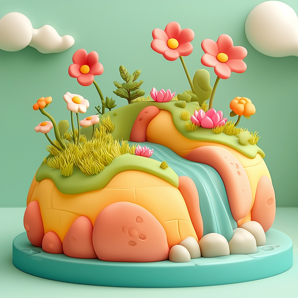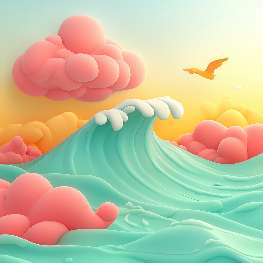 Gentle lighting highlights the rounded forms, enhancing pastel hues for a whimsical effect. The spatial arrangement is playful, with layered elements creating a sense of depth and texture.