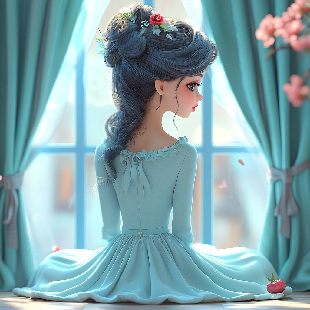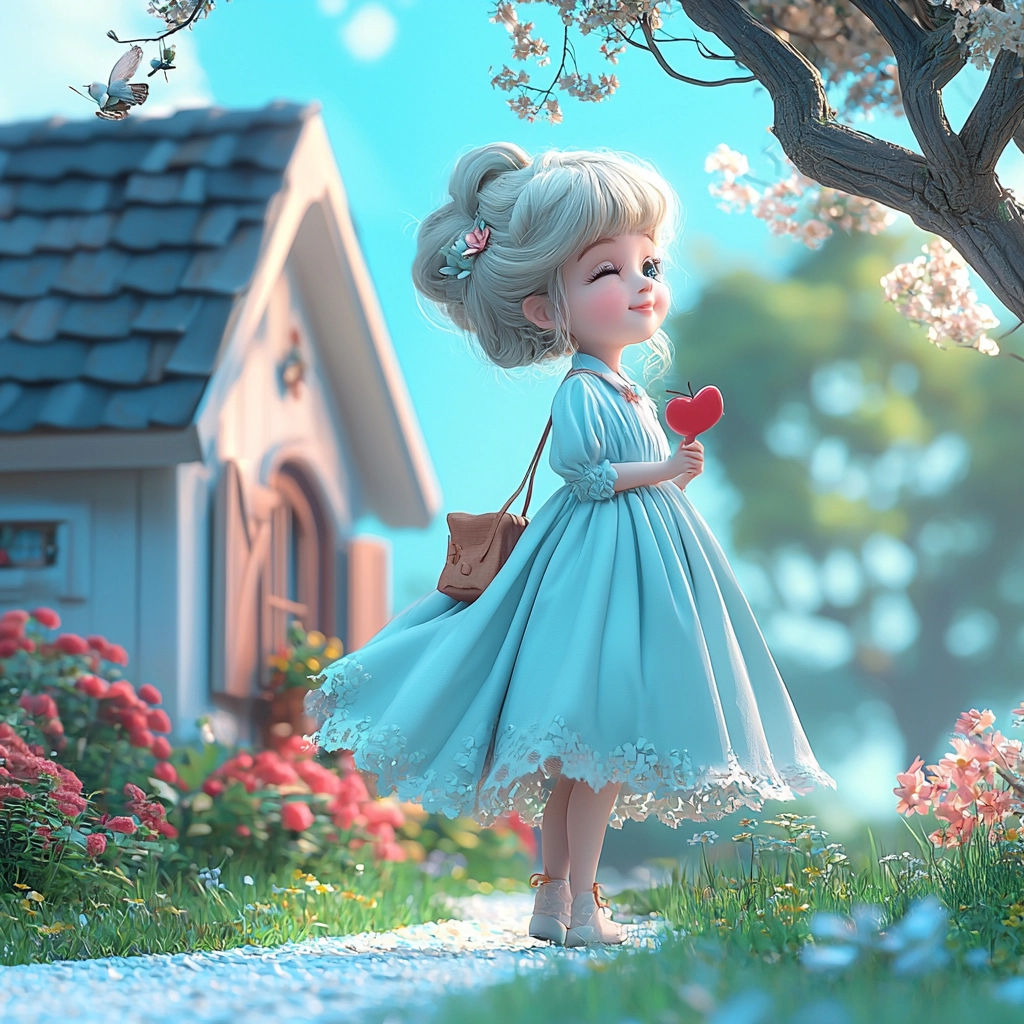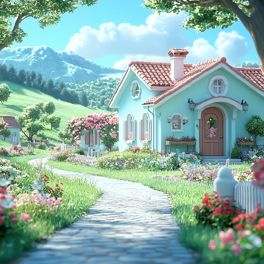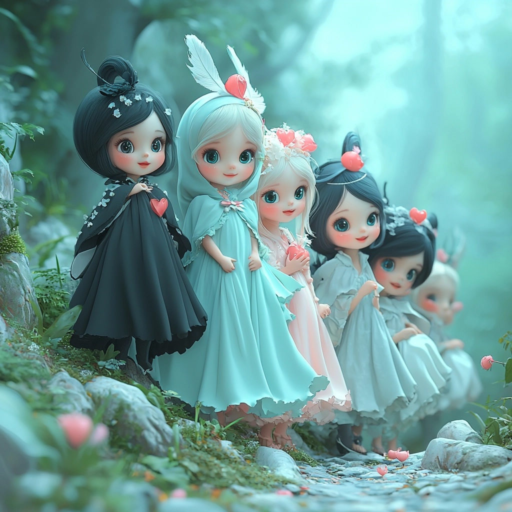 Cool lighting enhances the vivid pastel palette, giving a soft yet vibrant quality. Depth is achieved through the careful arrangement of elements, while textures are smooth and polished, contributing to a playful and harmonious visual experience.
