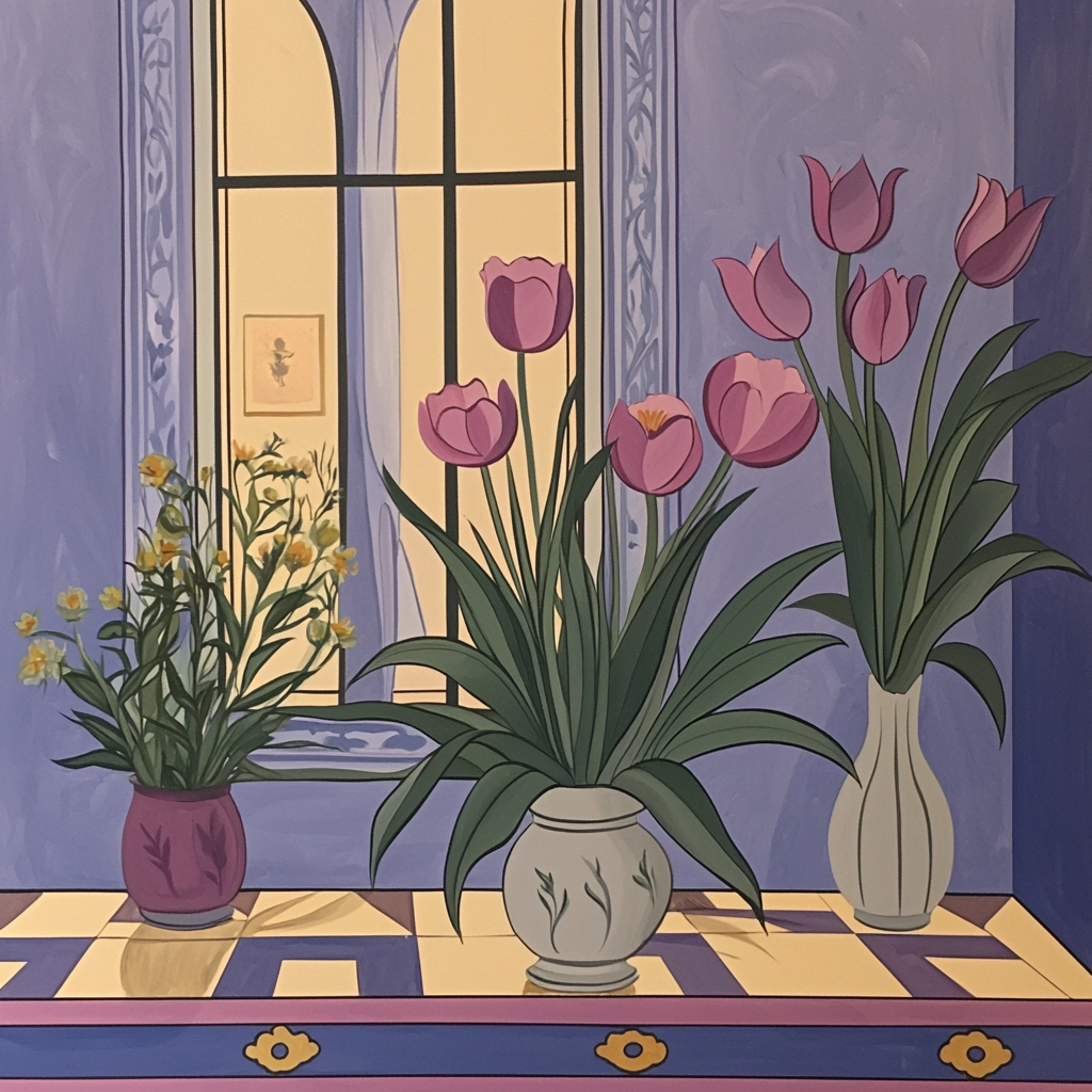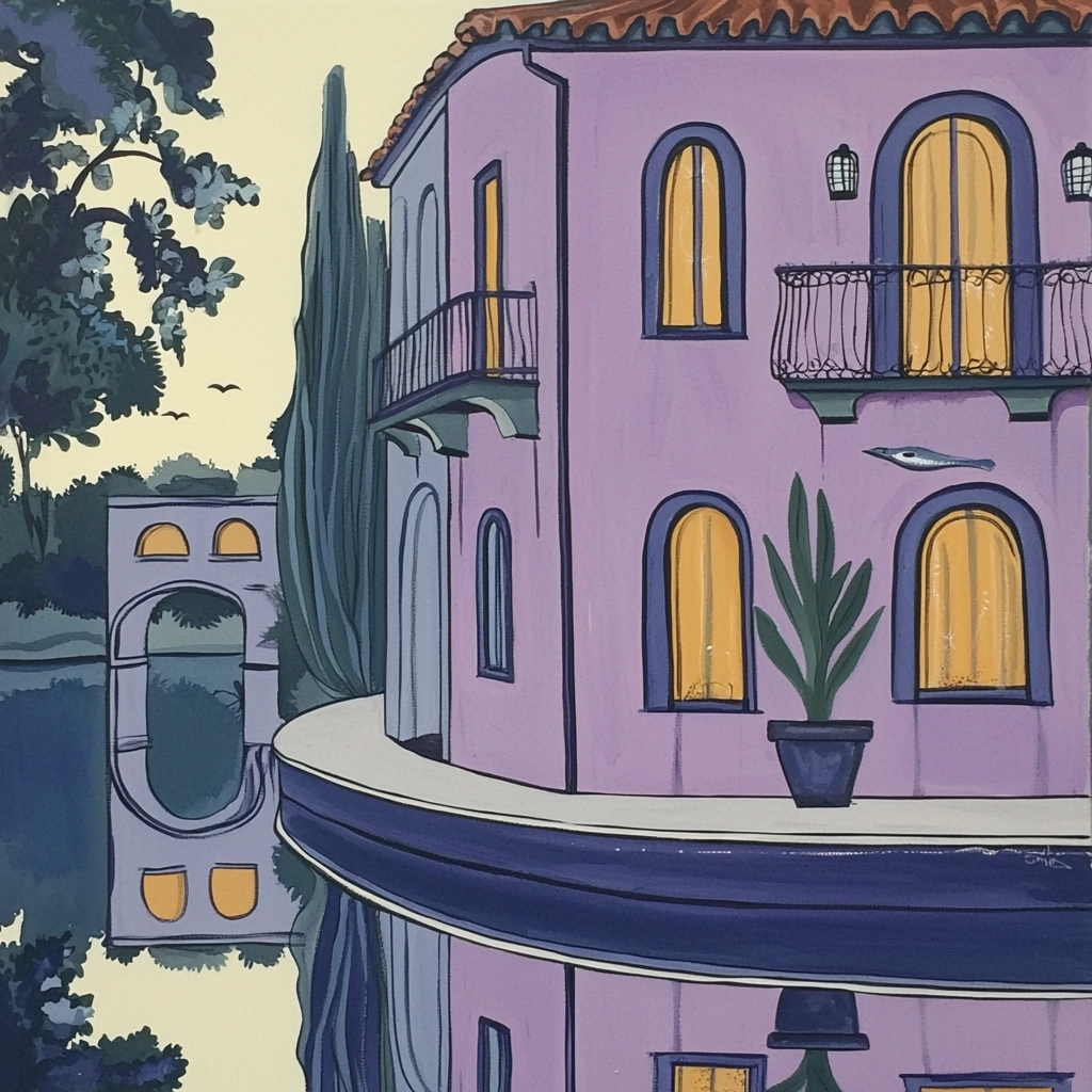 Pastel hues with defined outlines create a balanced visual composition.