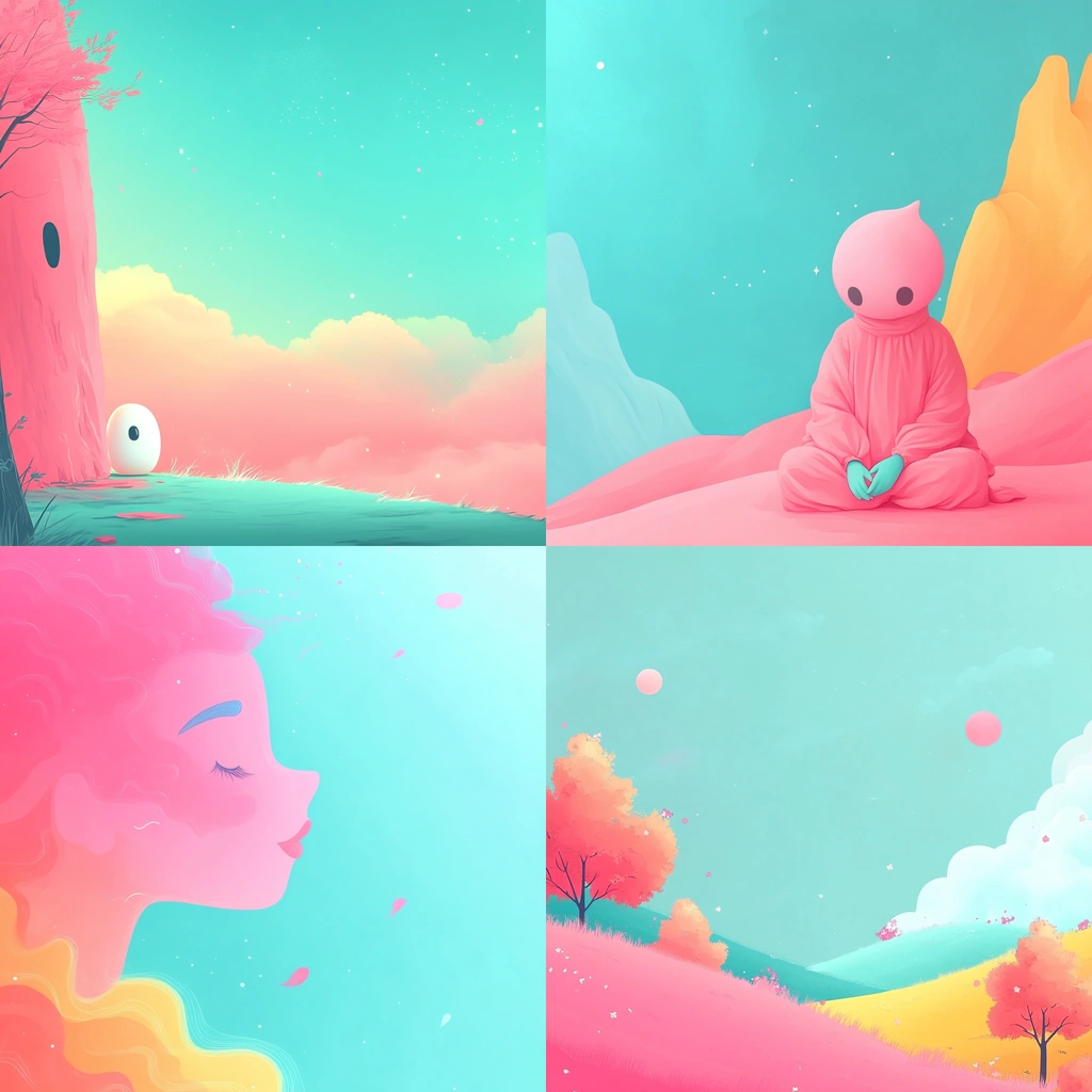 Pastel hues blend smoothly with gentle transitions and rounded forms.