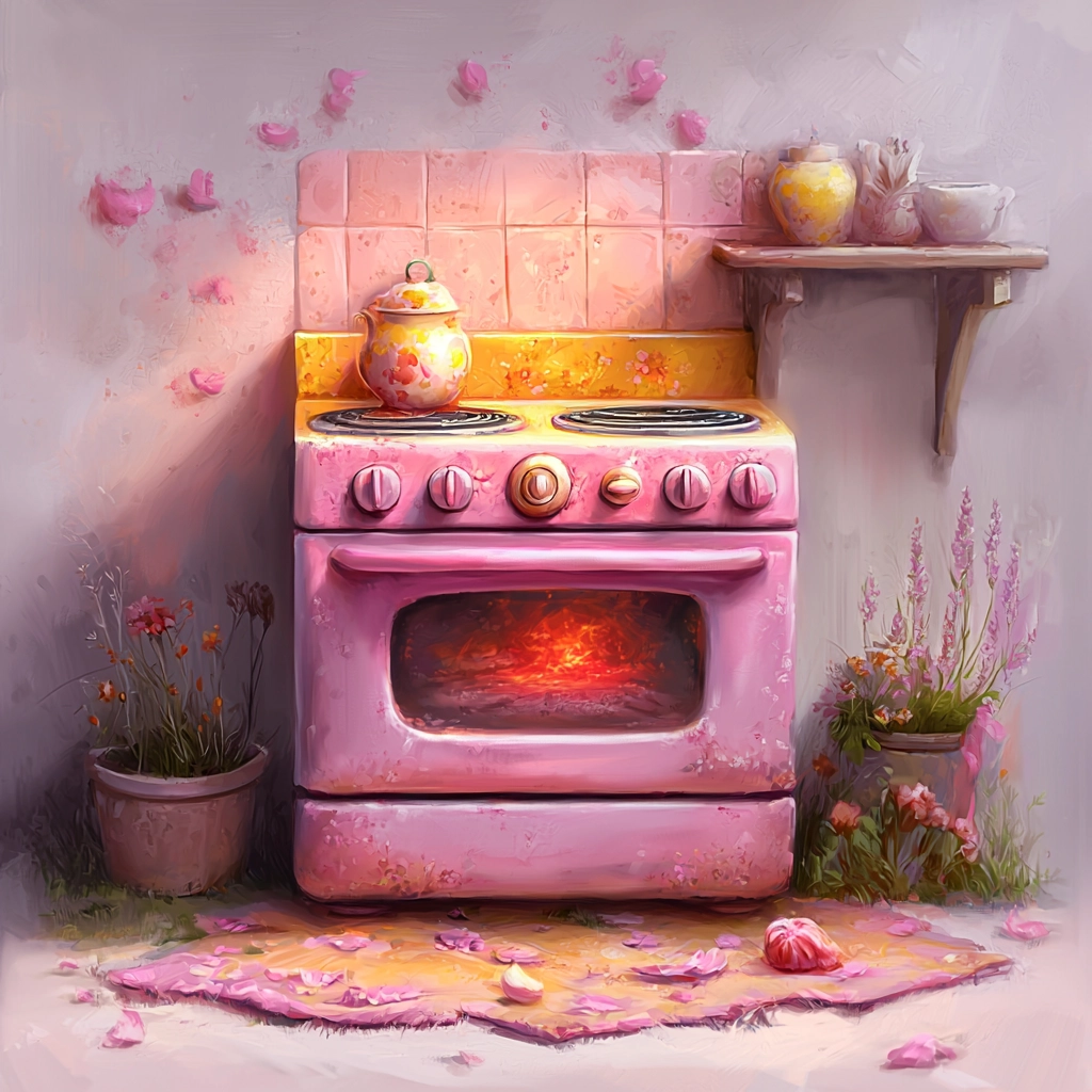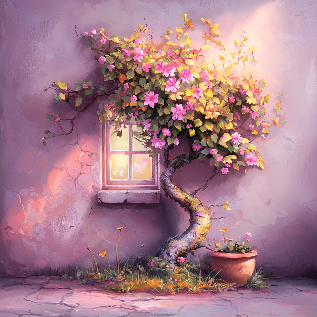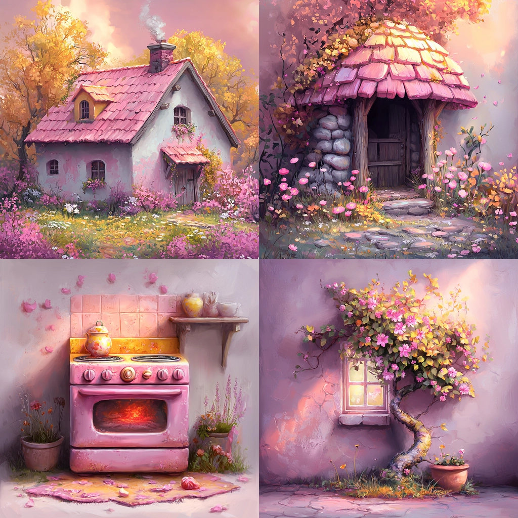 Pastel colors blend with soft, ambient lighting, creating a delicate harmony.