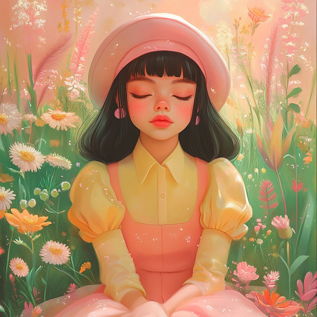 Bright pastel compositions featuring soft floral elements and geometric interior designs.