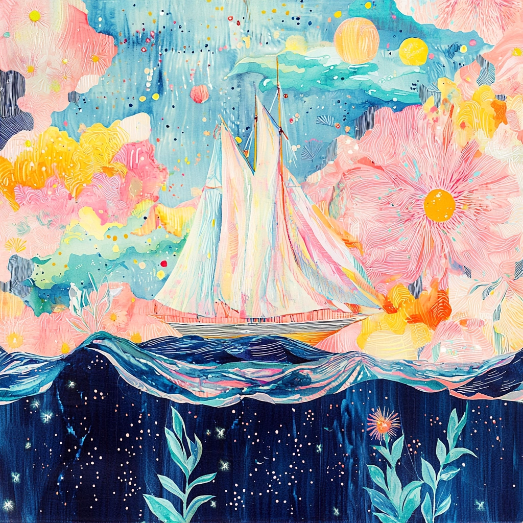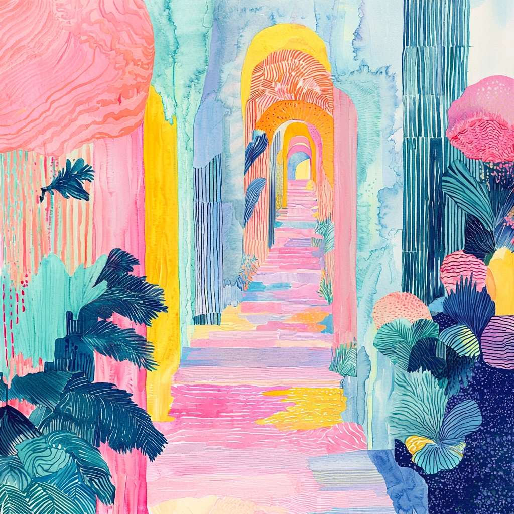 Soft pastels merge with vivid undertones, creating a vibrant and surreal visual impact.