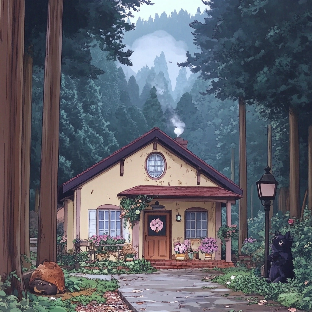 Soft lighting and pastel hues give a dreamy appearance, with a smooth texture enhancing the visual continuity and a balanced spatial distribution of elements.