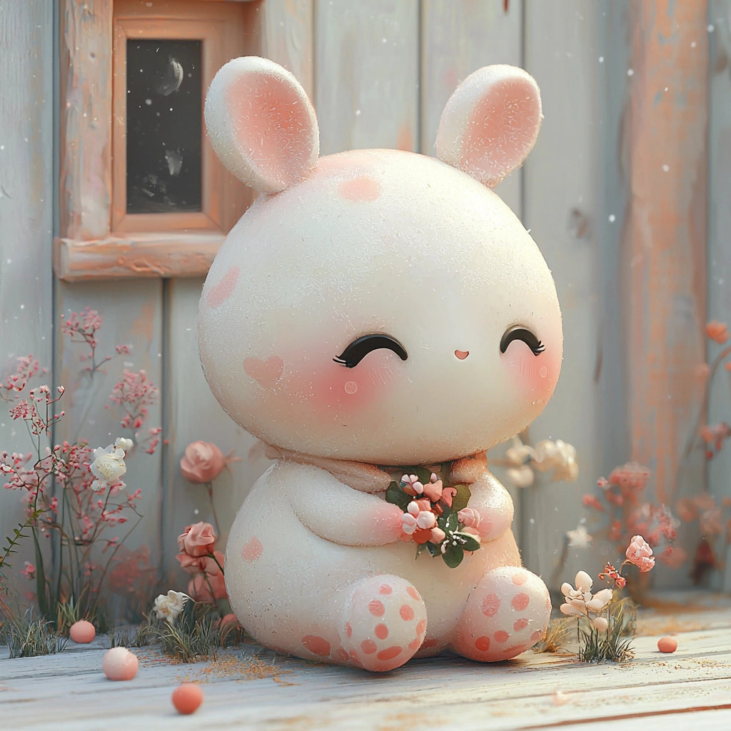 Quite delicate lighting creates gentle shadows and highlights. The use of pink and beige is consistent, adding warmth and tenderness. A smooth texture augments the overall softness, providing an inviting visual depth.