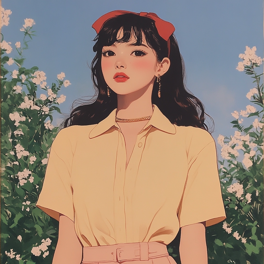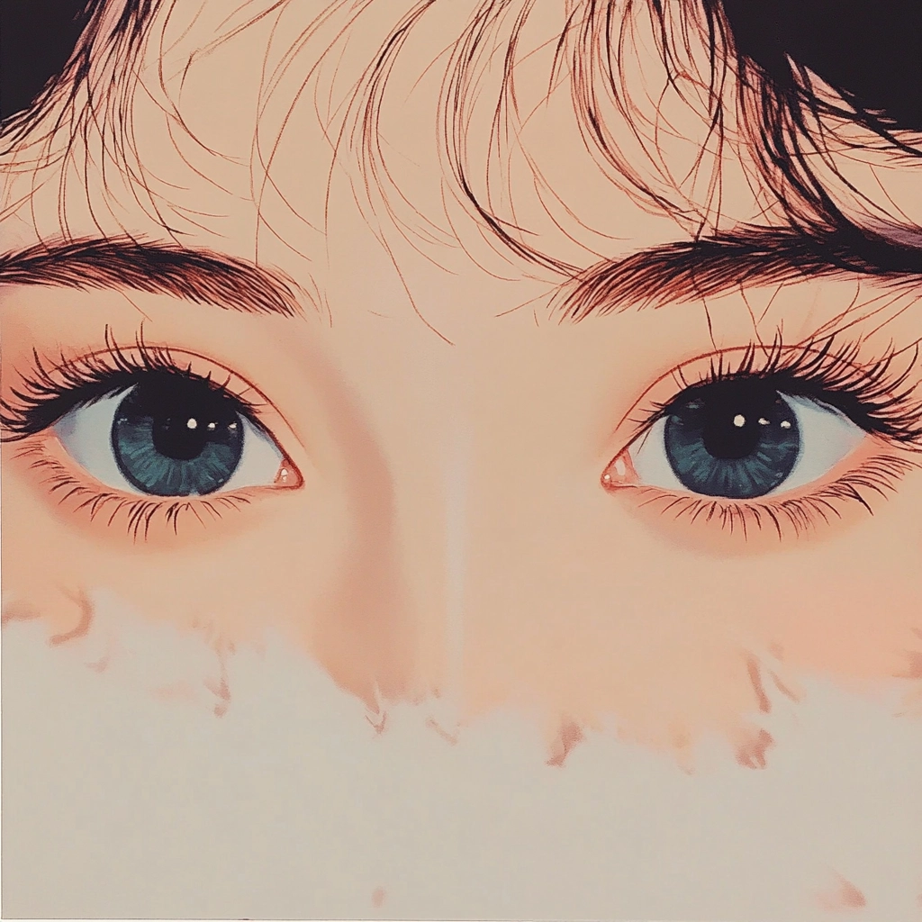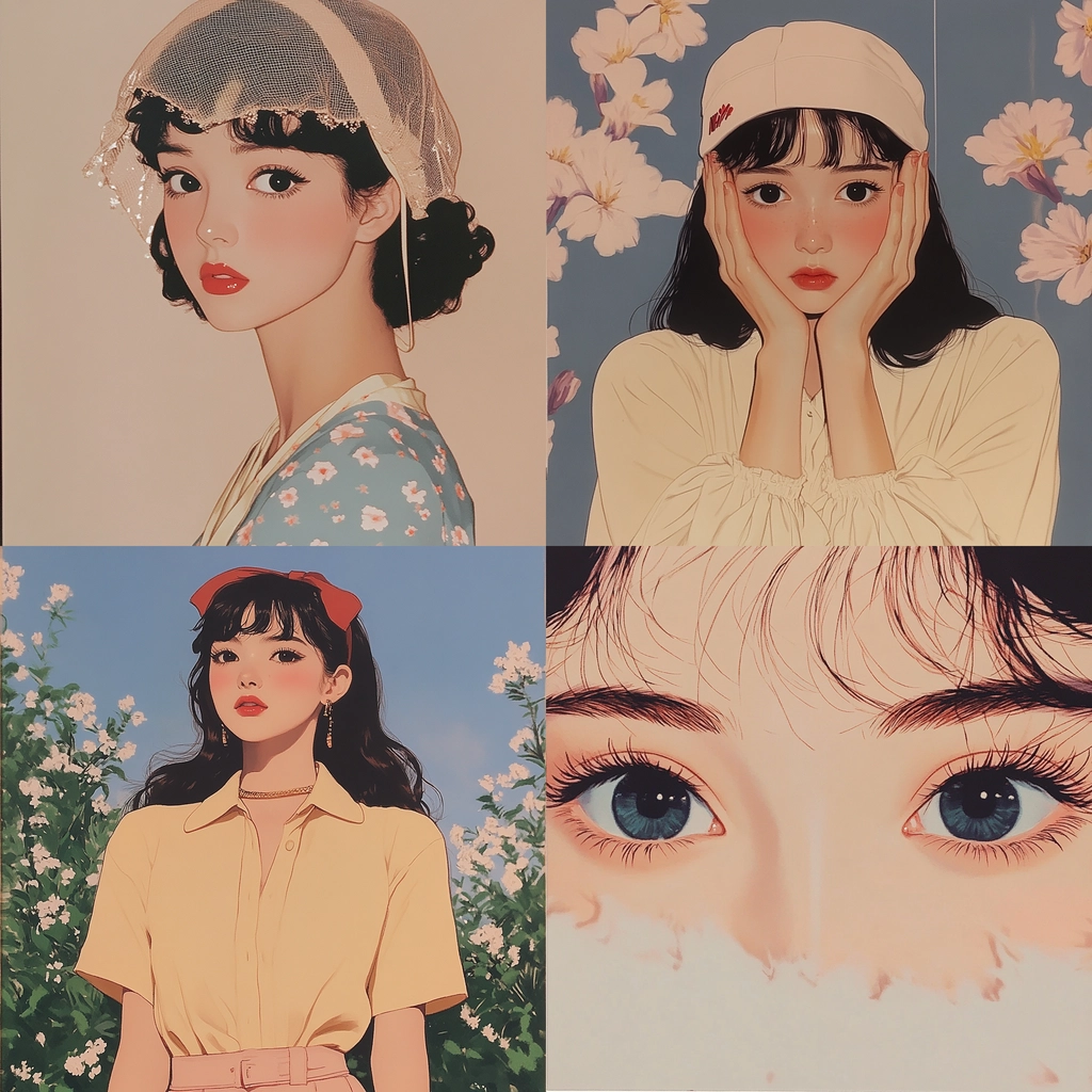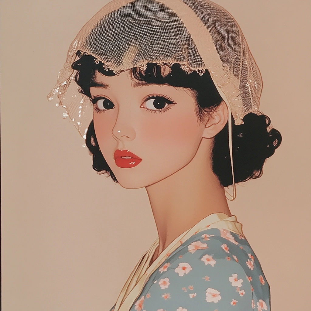 Lighting is soft and diffused, creating a gentle and even illumination across the subjects. Colors are pastel and muted, providing a tender visual quality. The use of floral elements in the background enhances the delicate and natural feeling, while the texture remains smooth and refined.