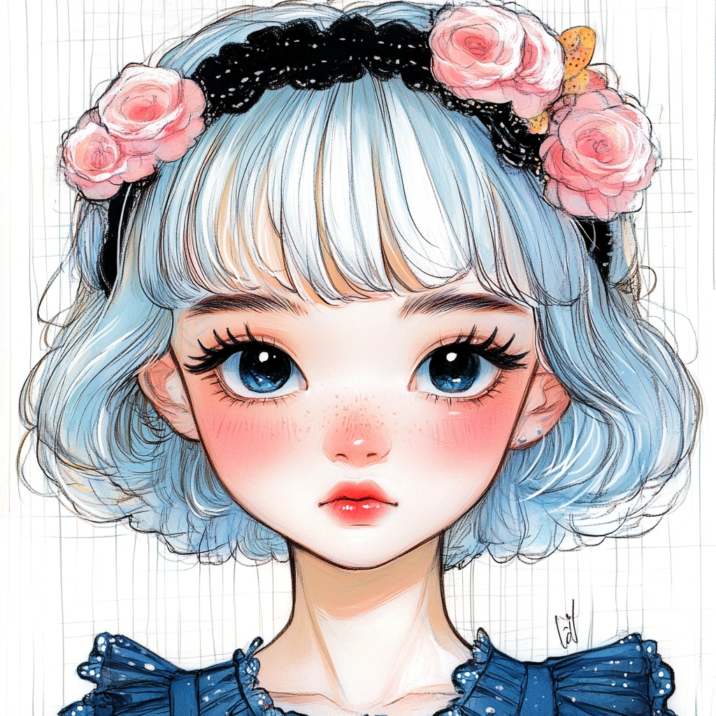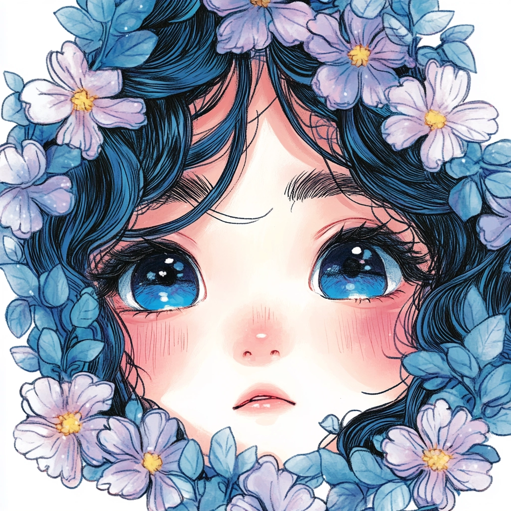 Delicate pastel colors with detailed floral compositions and vibrant hair hues.