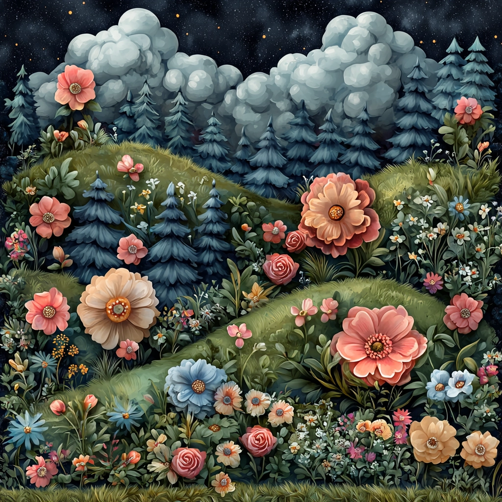 Delicate pastel tones create a harmonious and vibrant scene.