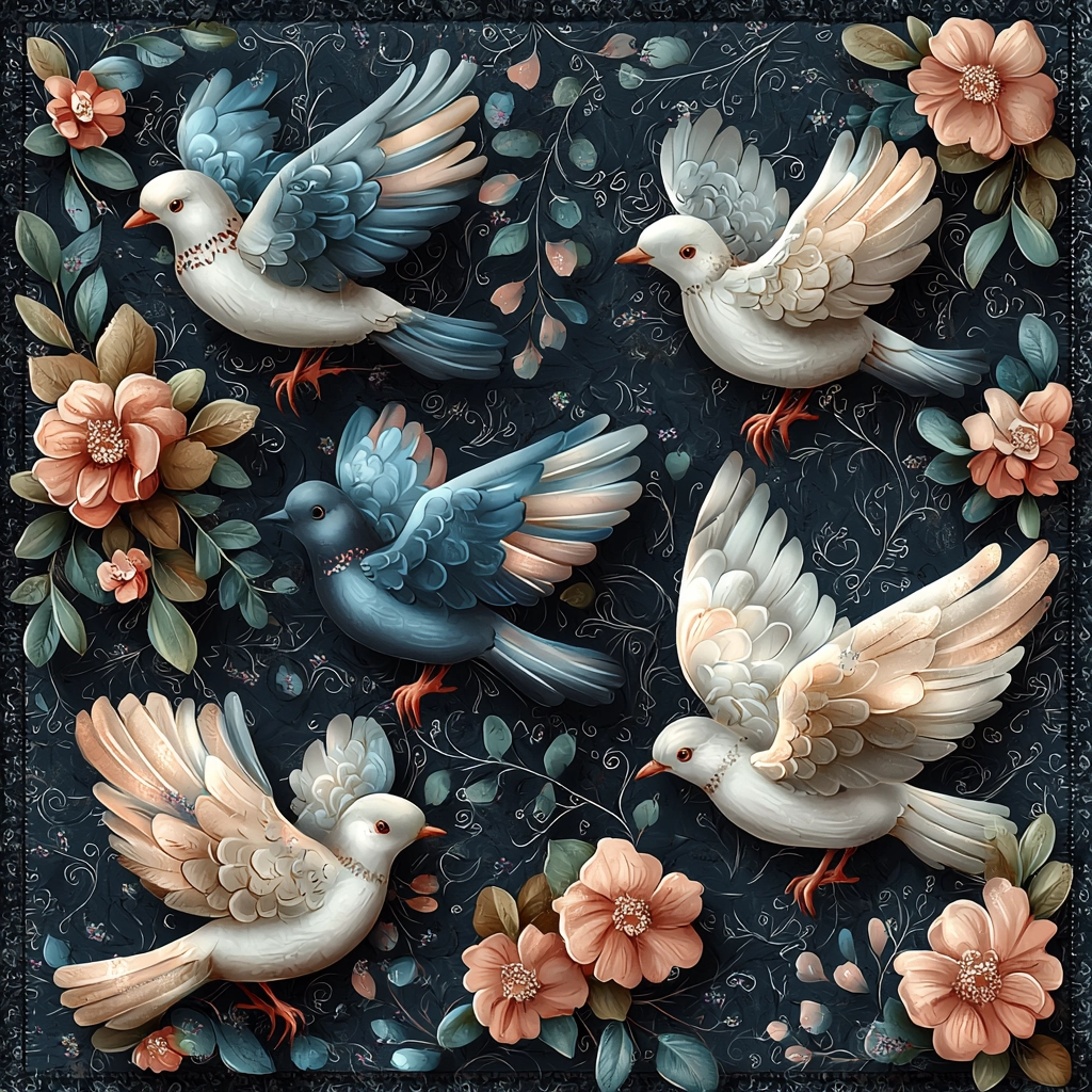 The lighting is soft, enhancing the pastel colors that bring subtle tonal variation. Details are fine, outlining elements with gentle precision and a refined sense of depth, while textures imply a graceful fluidity.