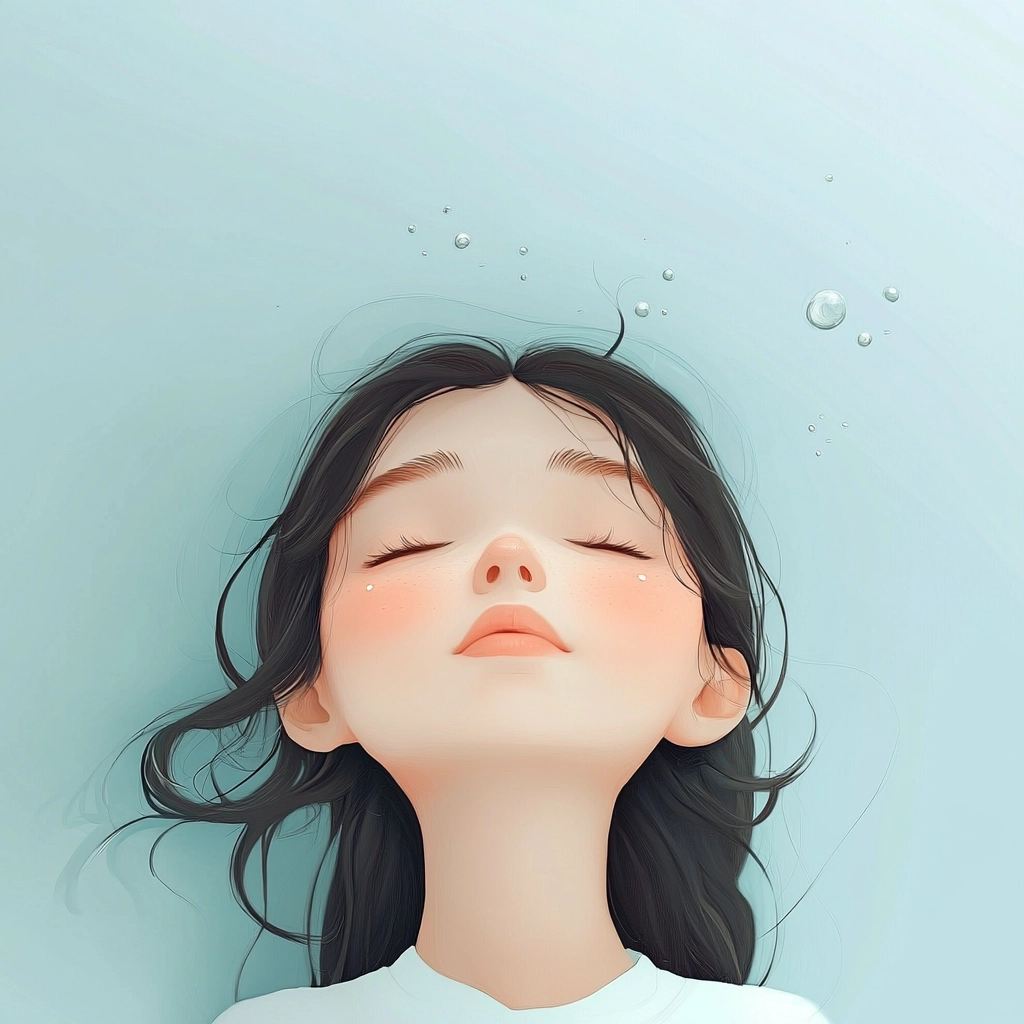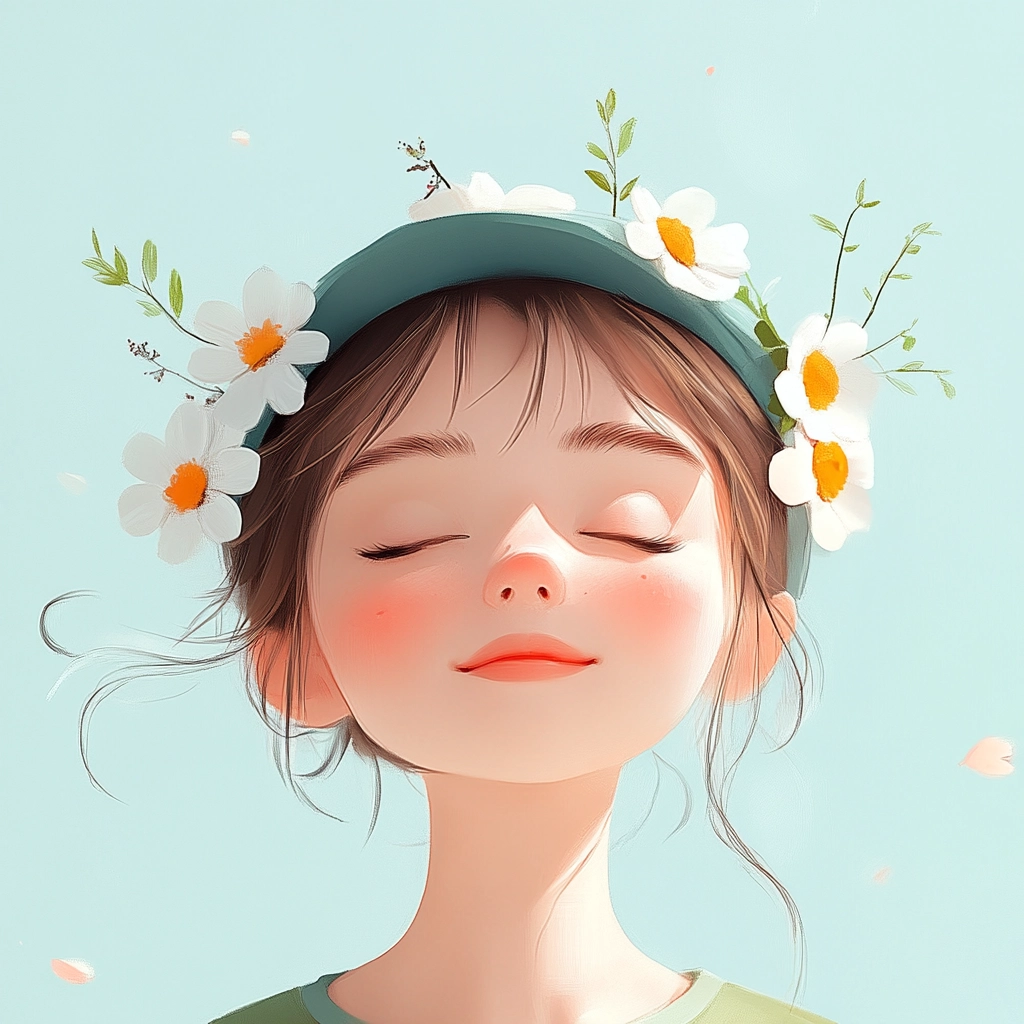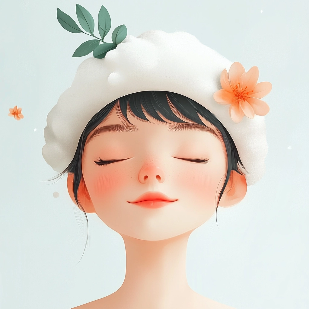 The composition uses soft pastels to evoke a gentle and lifelike impression.