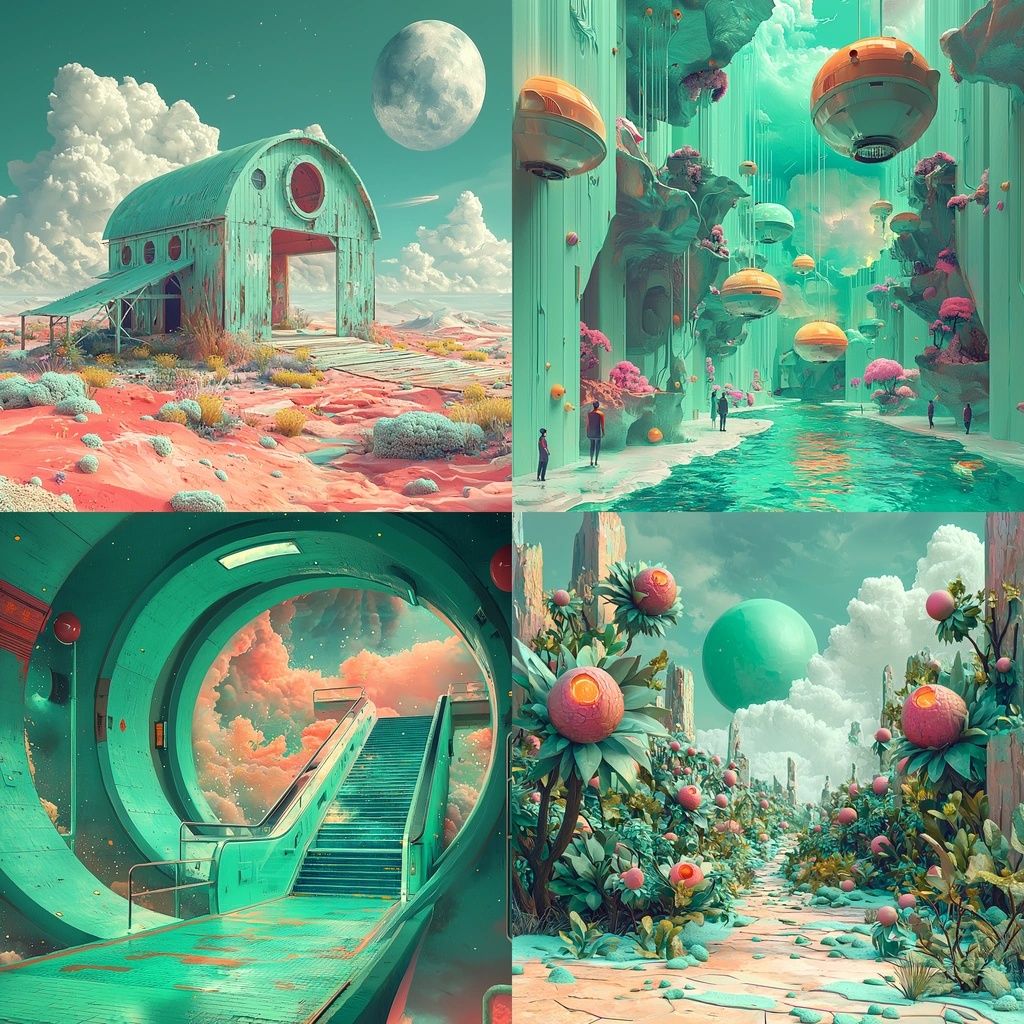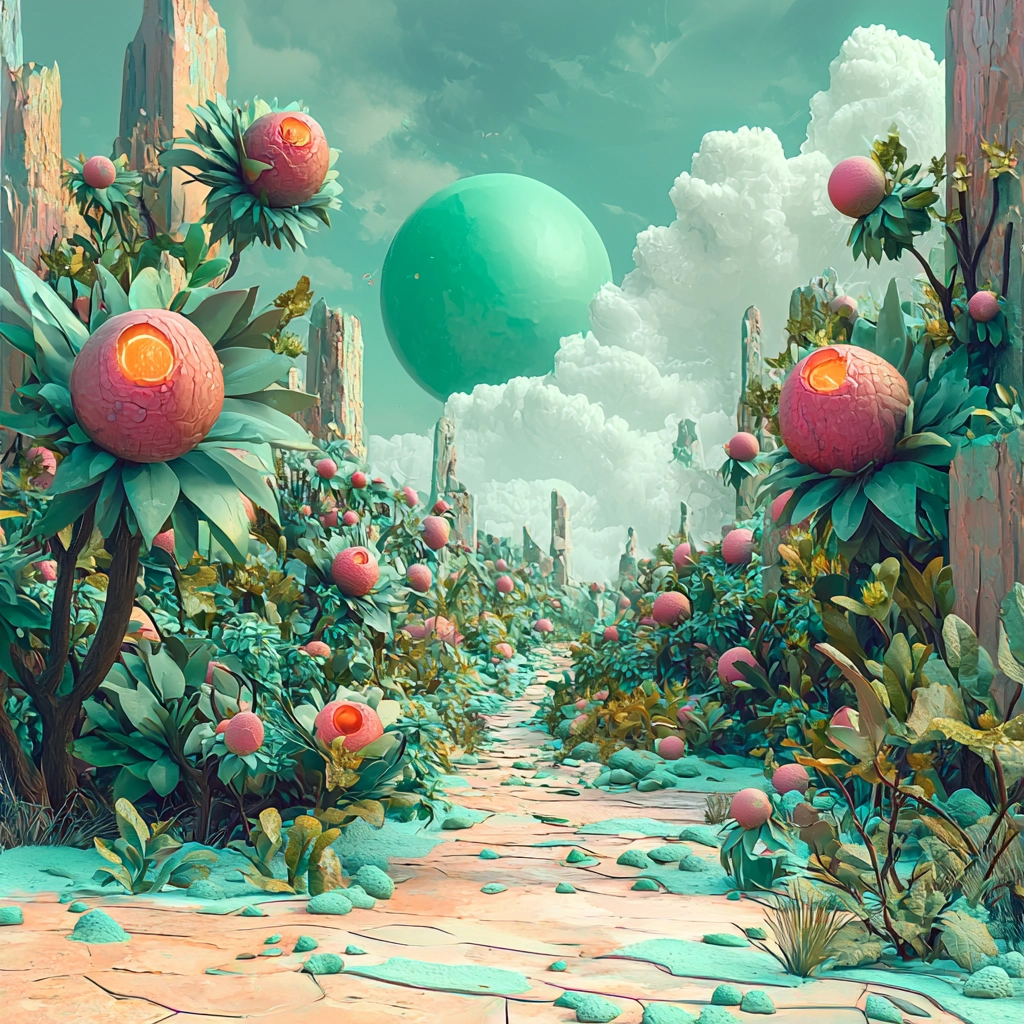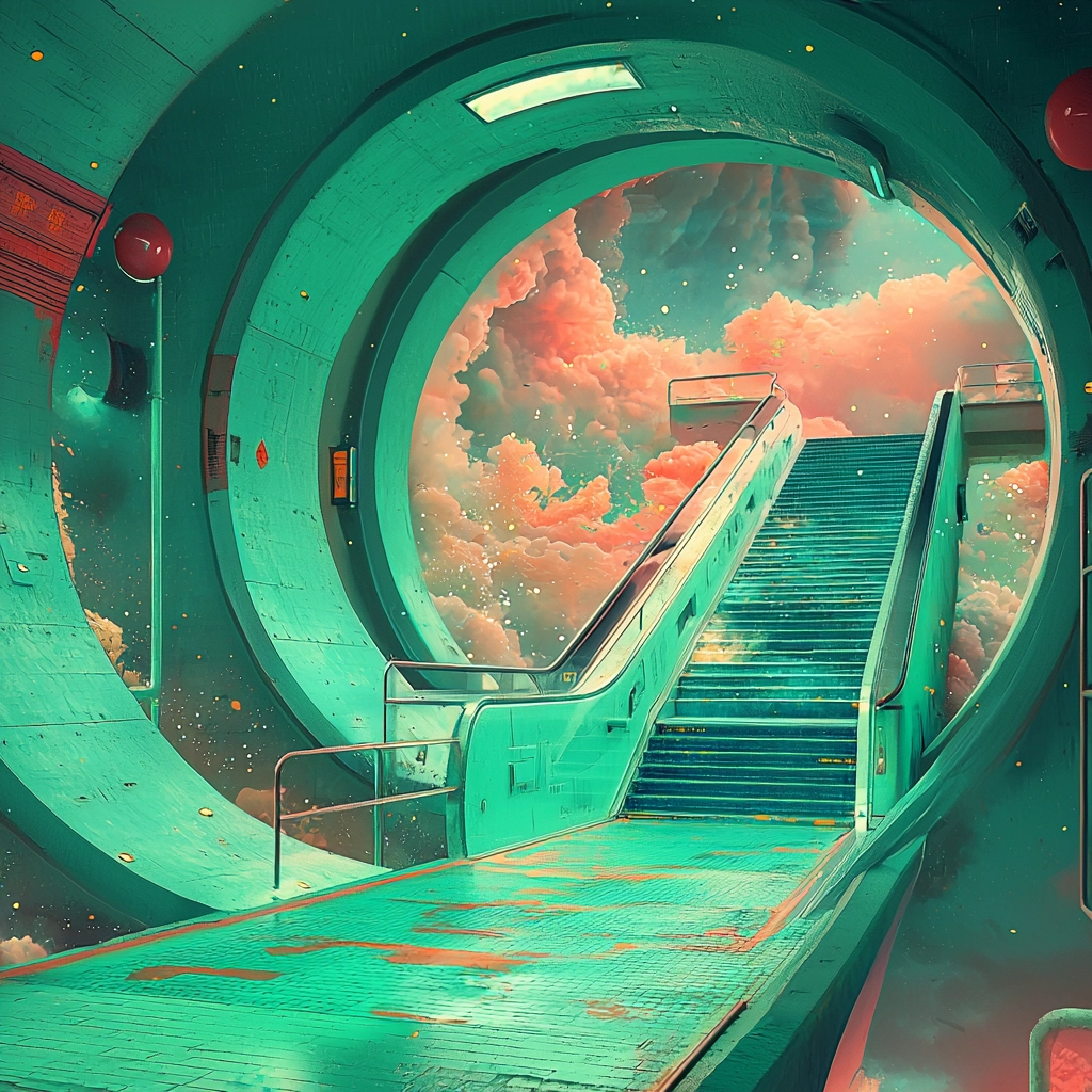 Soft lighting enhances pastel colors, forming a visually soothing experience. Vivid hues bring depth, while the intricate detail creates a textured perception. The spatial arrangement is dynamic, adding a journey-like perspective to the visuals.