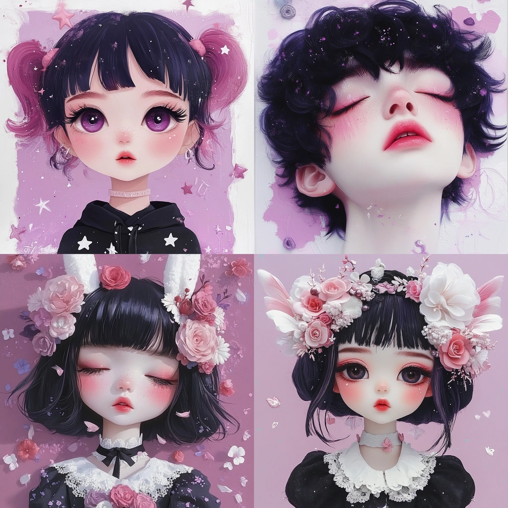 A vibrant mix of pastel hues with floral and whimsical elements.