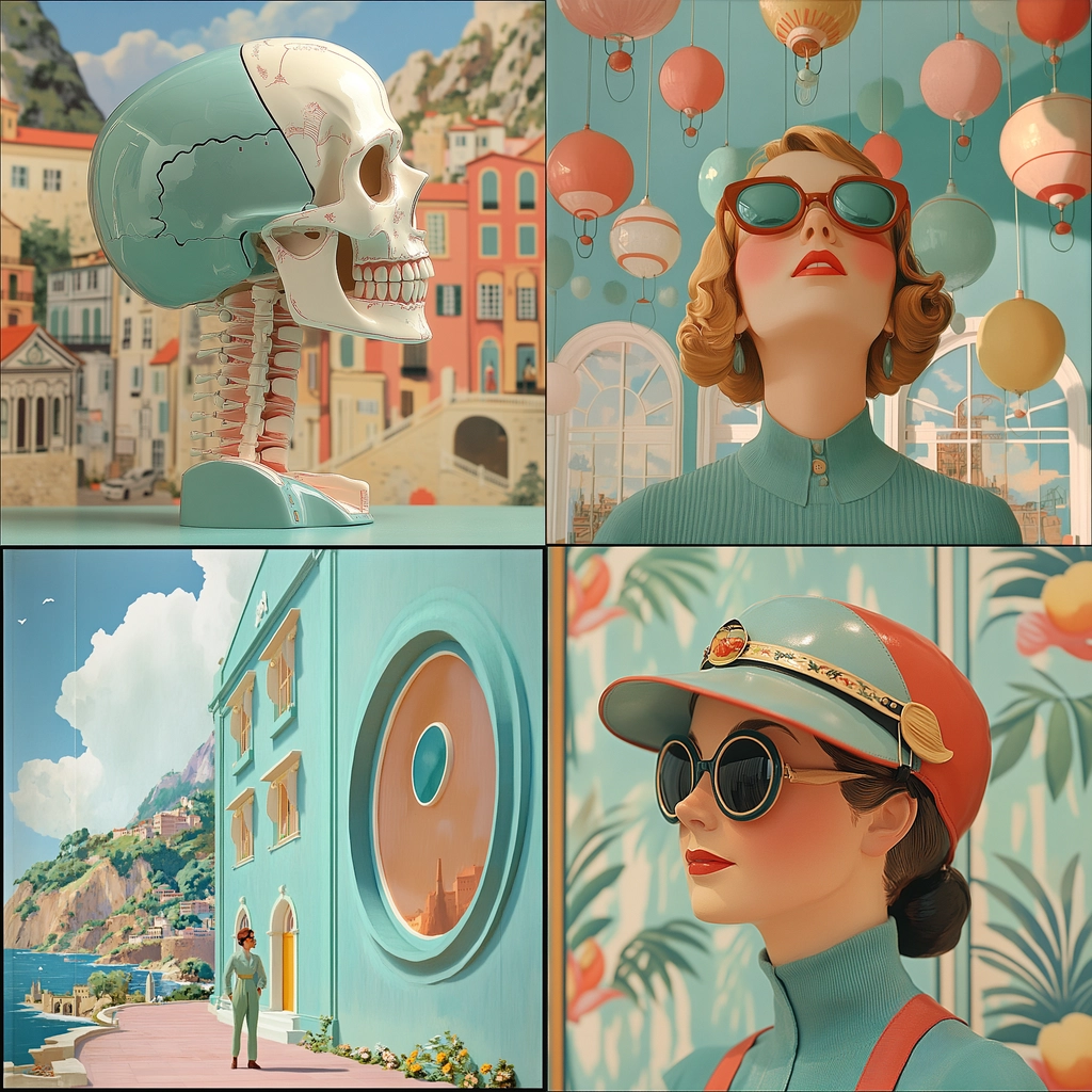 Utilizes pastel colors with geometric harmony and realistic precision.