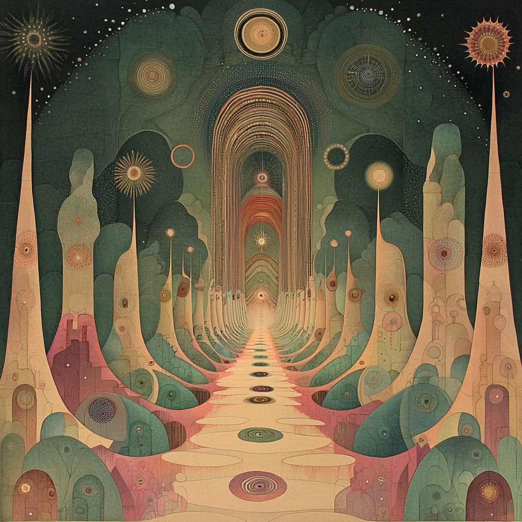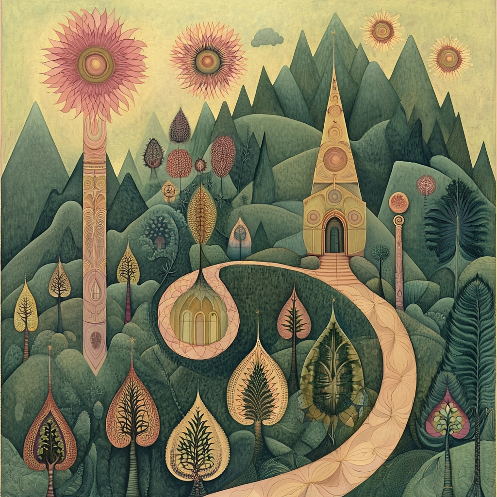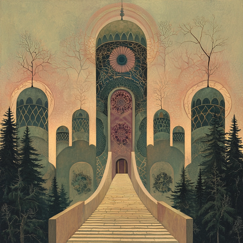 Pastel tones blend with geometric shapes for visual symmetry.