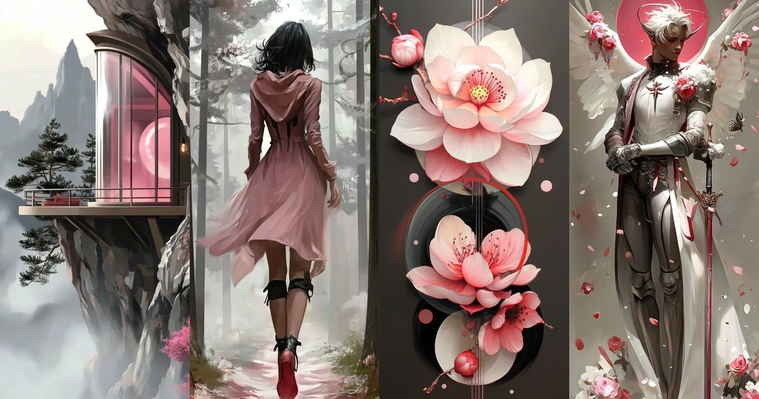 Pink, Gray, White