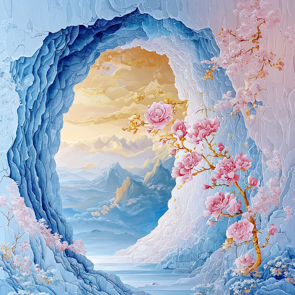 The use of diffused light effects enhances the peaceful ambiance, with soft gradients conveying depth. The texture is smooth, promoting a sense of seamless transition within the visual space.