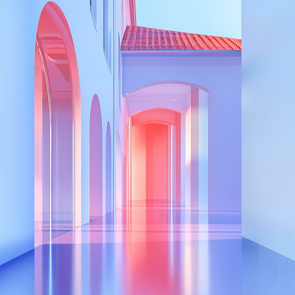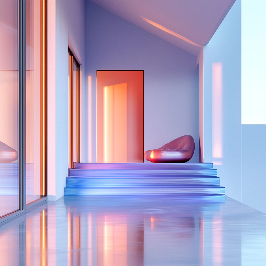Soft gradients create a harmonious balance of pastel hues with reflective surfaces.