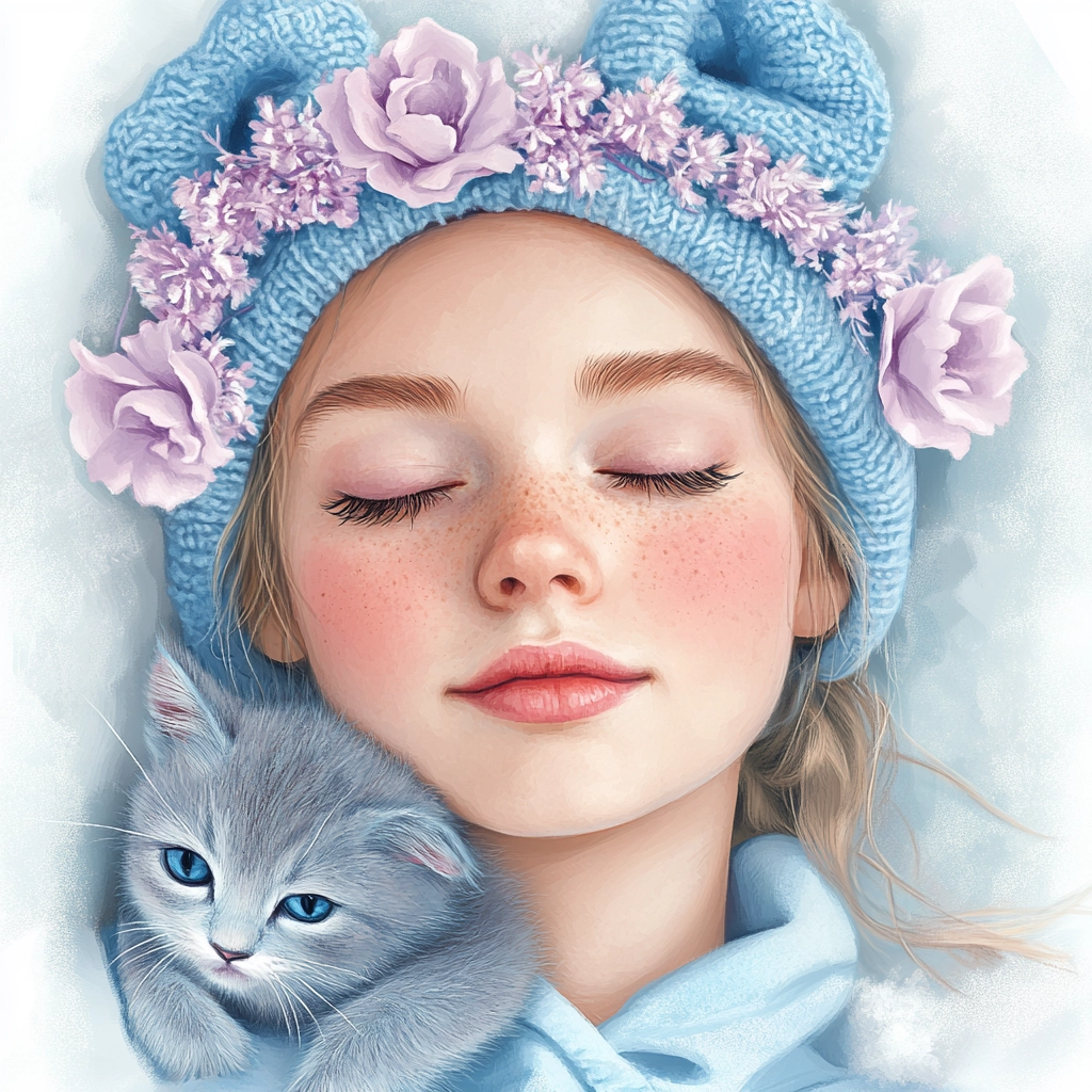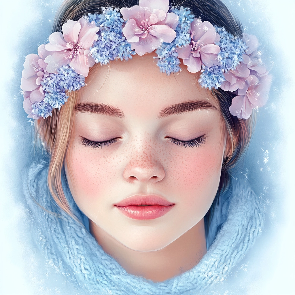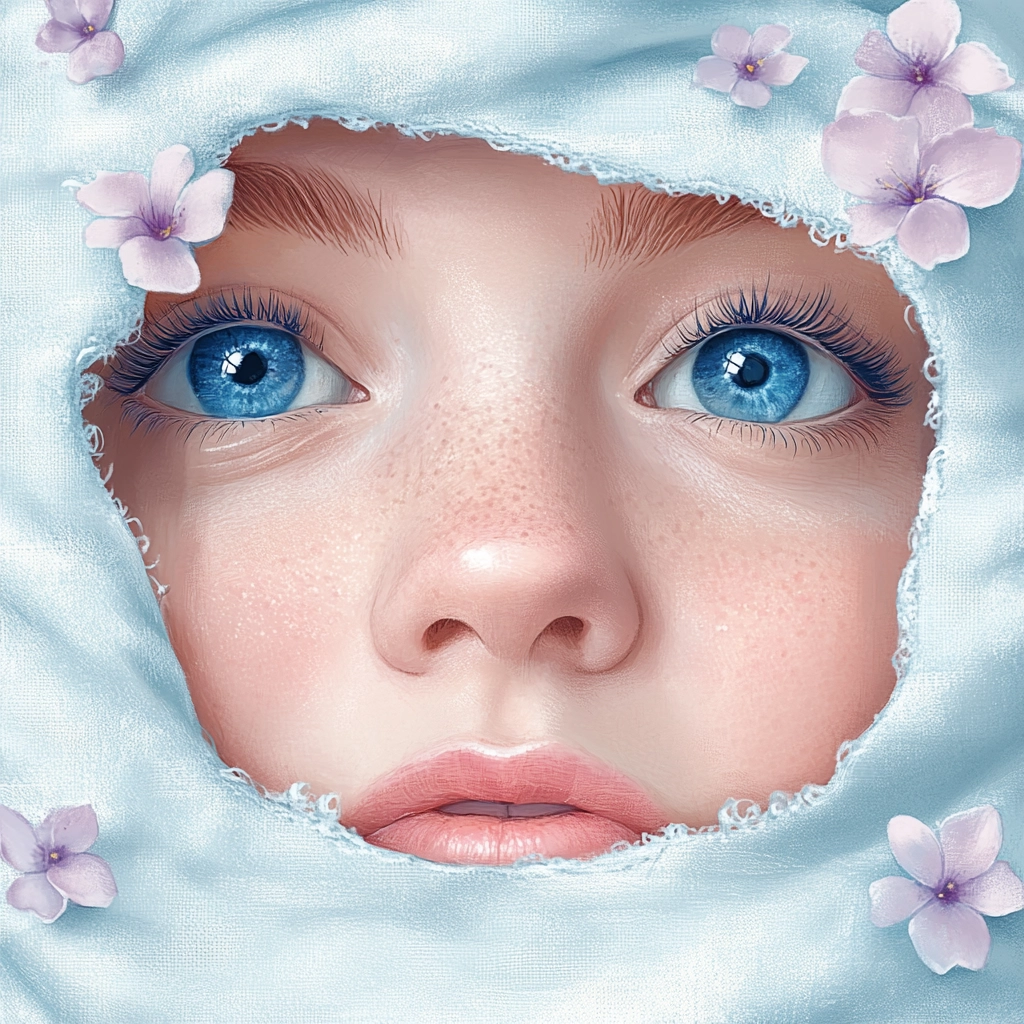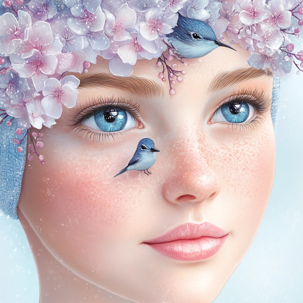 The composition utilizes soft, diffused lighting to create a cohesive and ethereal look. The color palette centers around pastel blue and pink tones, highlighted by subtle textural details that enhance the delicate appearance of floral accents.