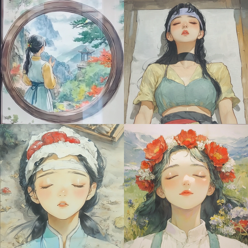 The lighting is soft, capturing natural daylight and enhancing the subtlety of pastel hues. Colors are muted yet vibrant, giving depth without harsh contrasts. Spatial arrangement is precise, creating an intimate yet expansive visual experience with textured details.