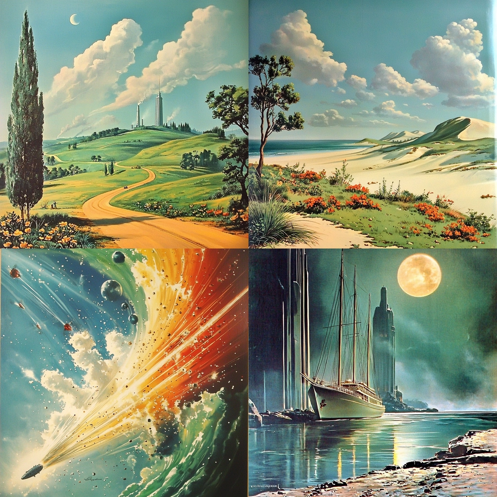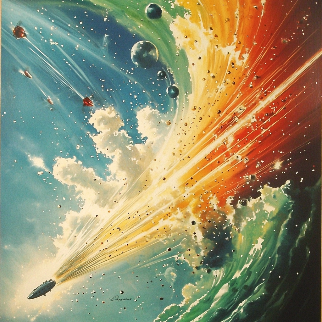 The use of lighting accentuates depth and the interplay between light and shadow. Smooth pastel colors create texture, while the fluid distribution conveys spatial depth. Compositionally, elements are dynamically arranged for a balanced vision.