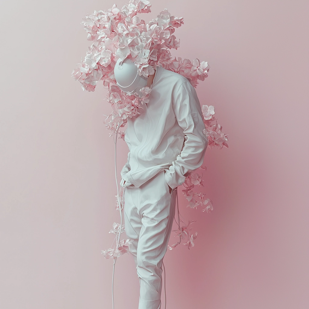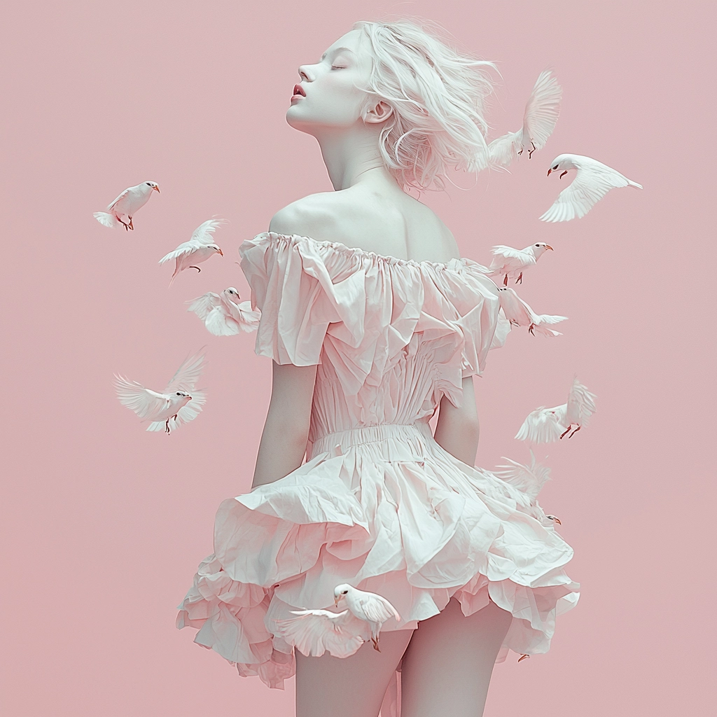 Soft pink tones create a dreamlike, cohesive composition with gentle contrasts.