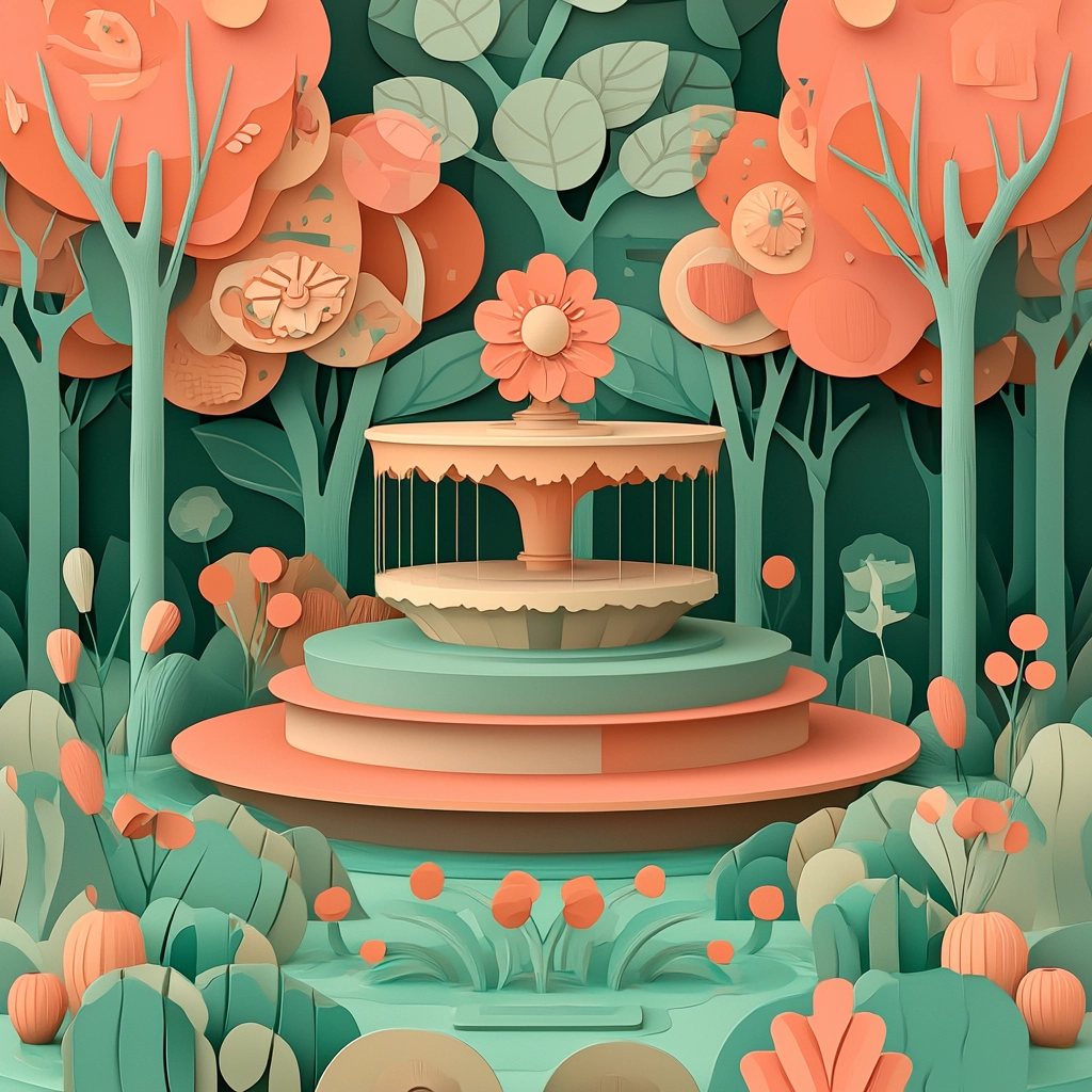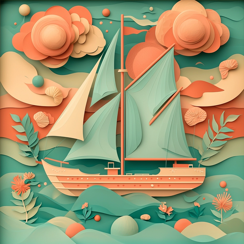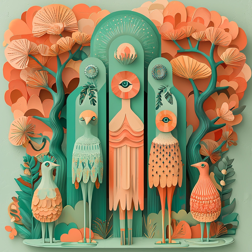 Lighting is softly diffused across the surface, enhancing subtle pastel shades of orange and turquoise. The layered composition provides a sense of relief, defining clear foreground and background divisions, while maintaining a harmonious texture throughout.