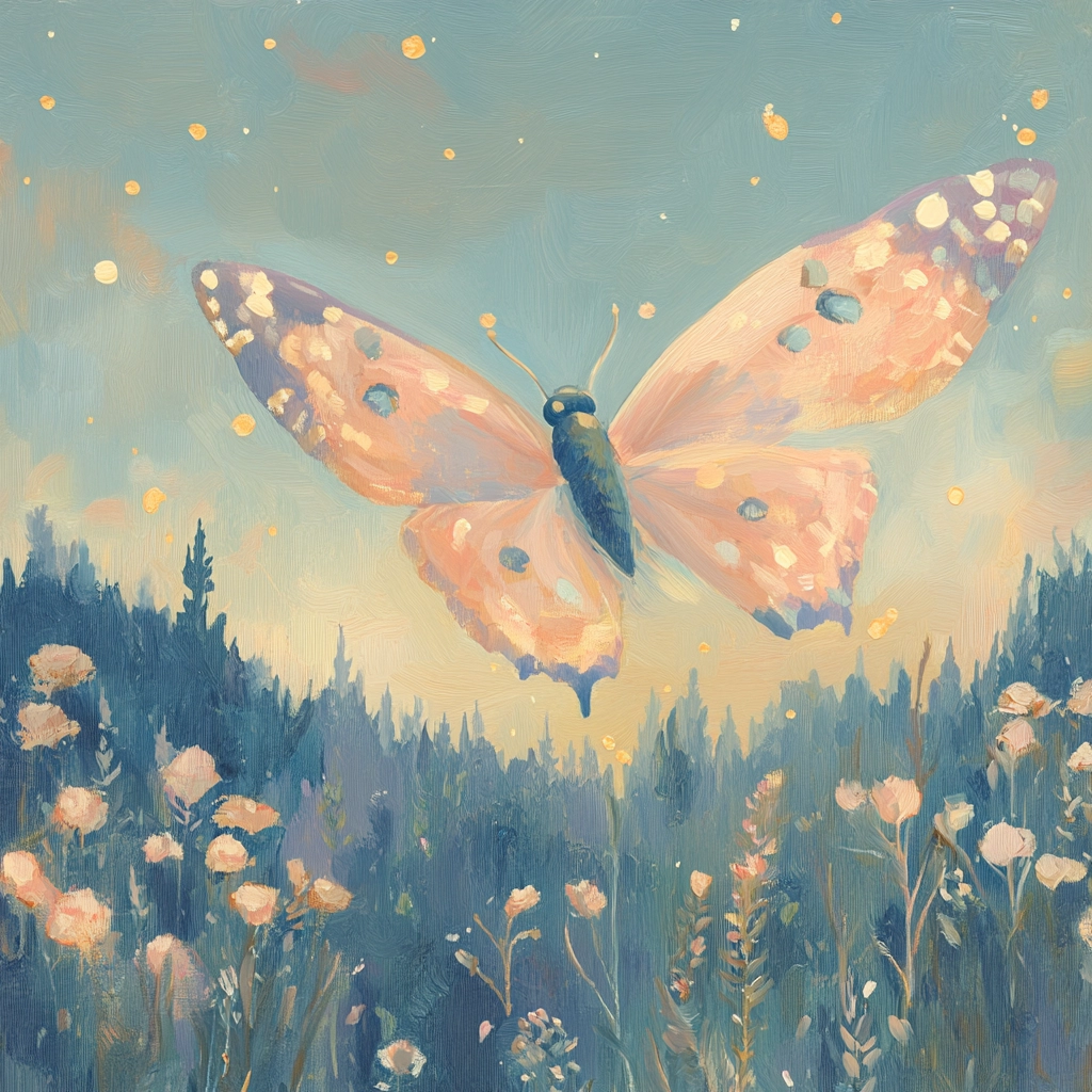 The artwork uses gentle lighting effects that softly illuminate the pastel colors, providing a harmonious balance. The textures are subtly stroked, enhancing the spatial depth without overwhelming details, resulting in a serene visual landscape.
