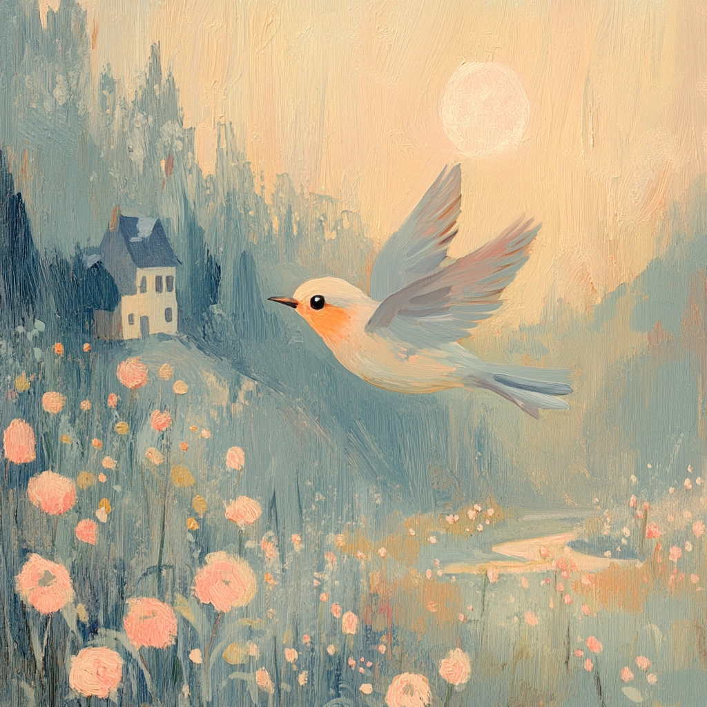 Soft pastel tones with delicate light create a cohesive, soothing scene.