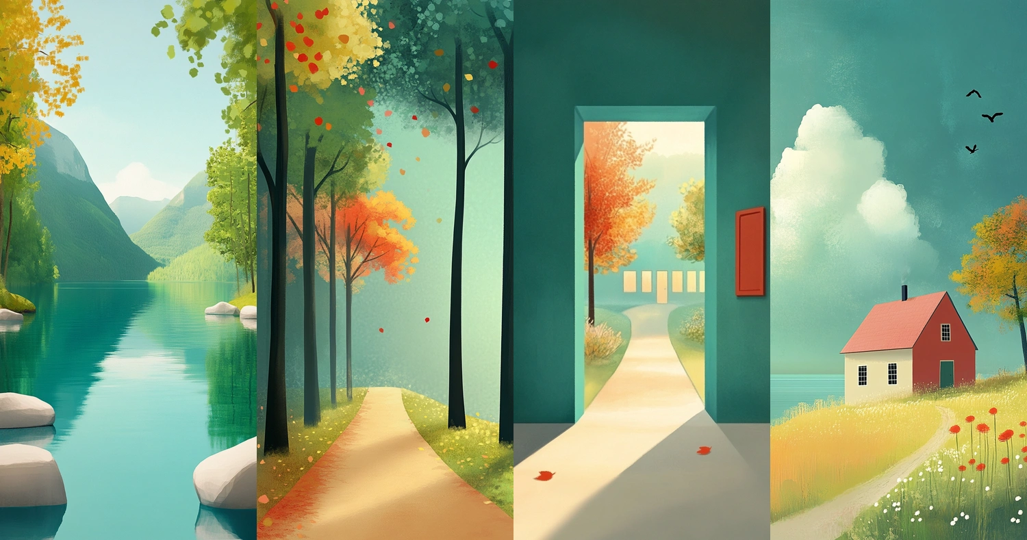 Gentle lighting enhances the delicate color palette, while smooth textures and a balanced spatial layout create a sense of unity and continuity throughout, emphasizing natural beauty.