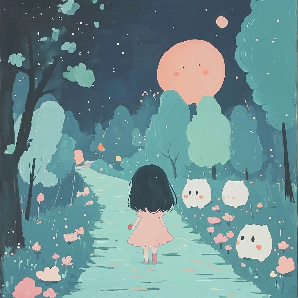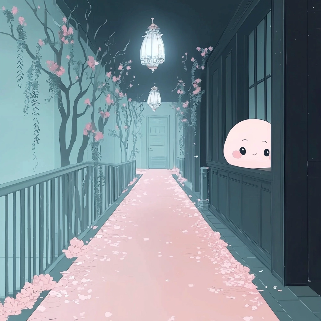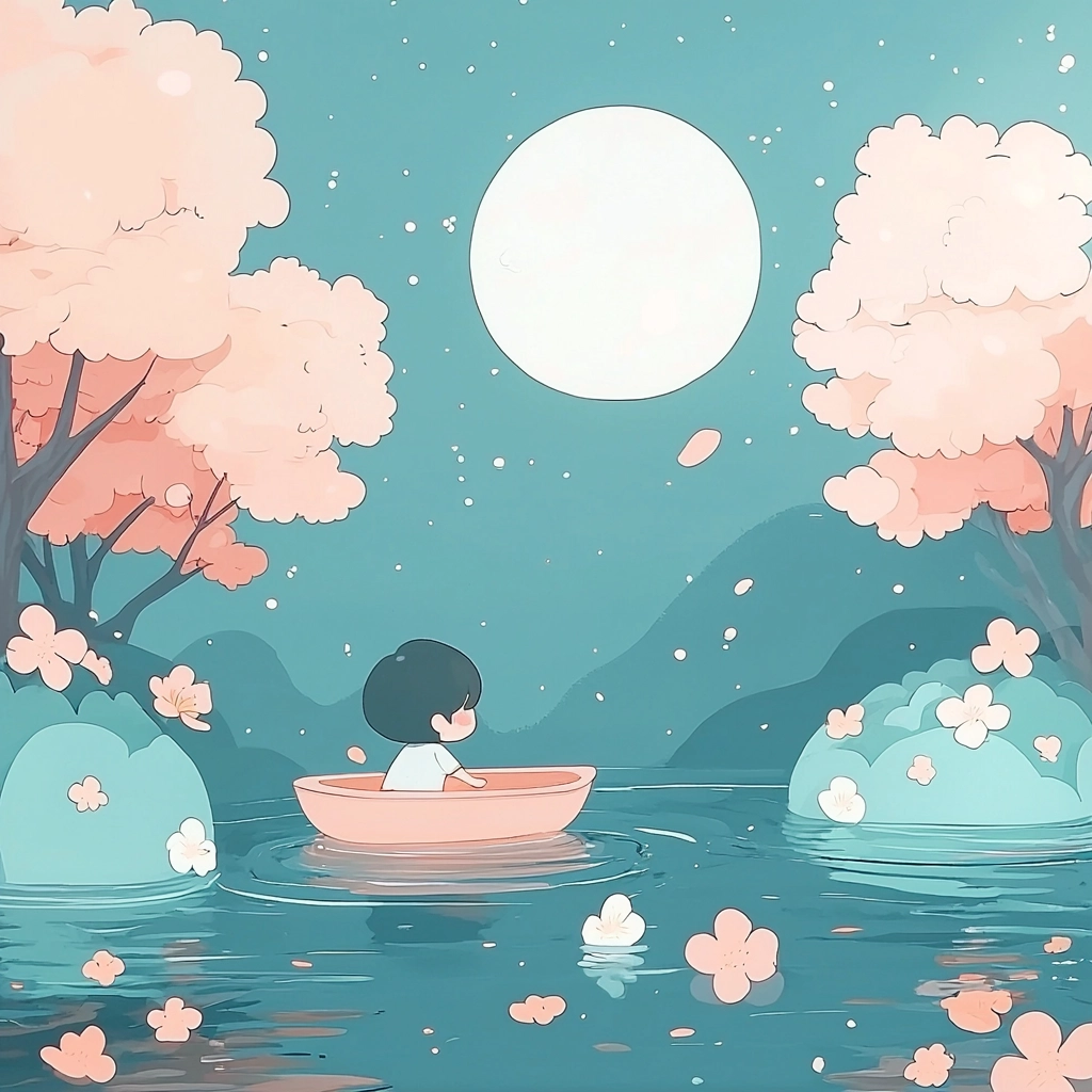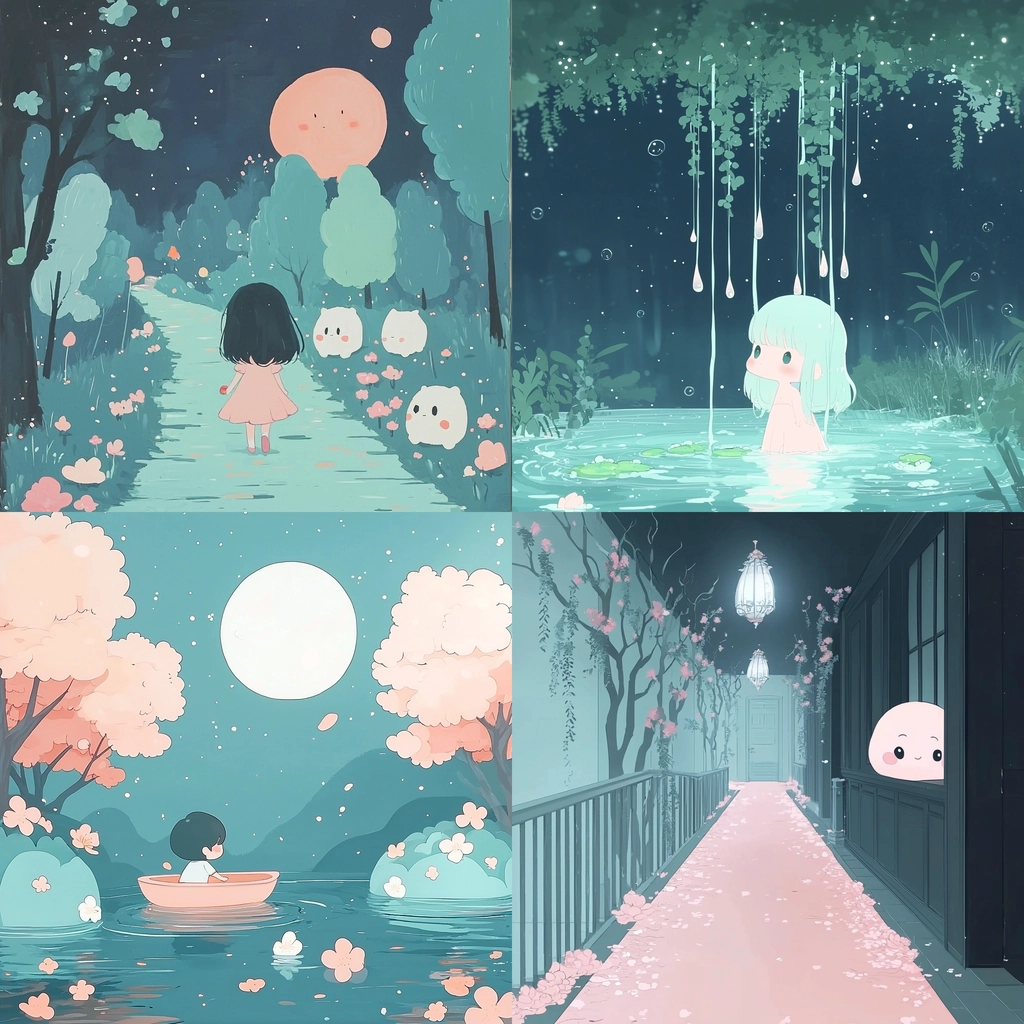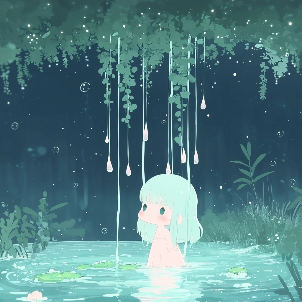 Soft lighting effects highlight the gentle transitions between colors. Cyan and dark blue dominate, forming a cool, calming backdrop. Minimal shadow use maintains a flat spatial sense while pastel textures offer a smooth, subtle feel across the scene.