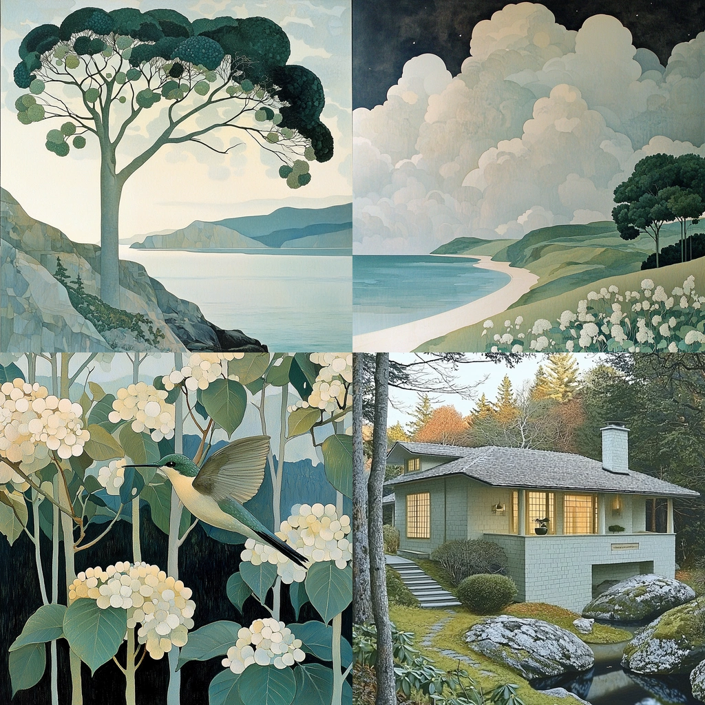 The soft lighting and muted color palette create a gentle harmony, while precise contours and varied textures add depth. Subtle gradations in tone enhance spatial perception and compositional balance.