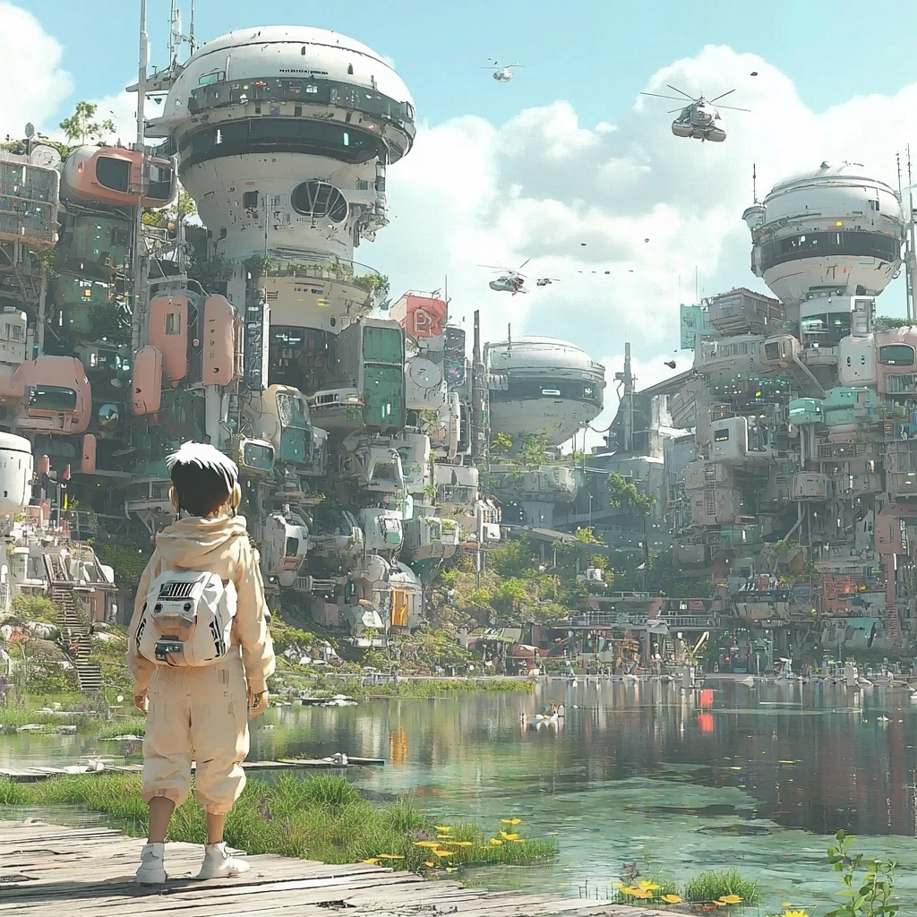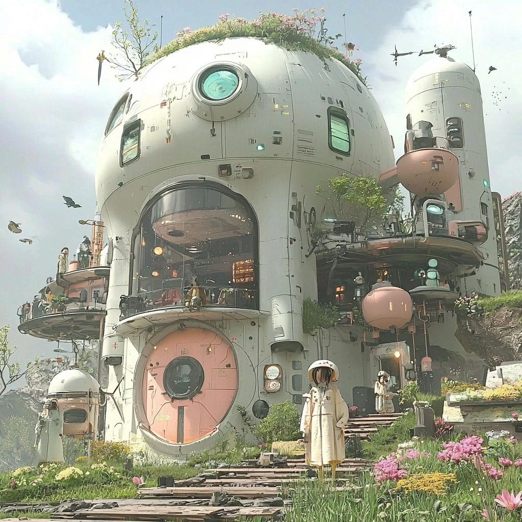 Soft pastel hues juxtapose futuristic architectural elements, creating a gentle yet innovative spatial environment with intricate details and layered compositions.
