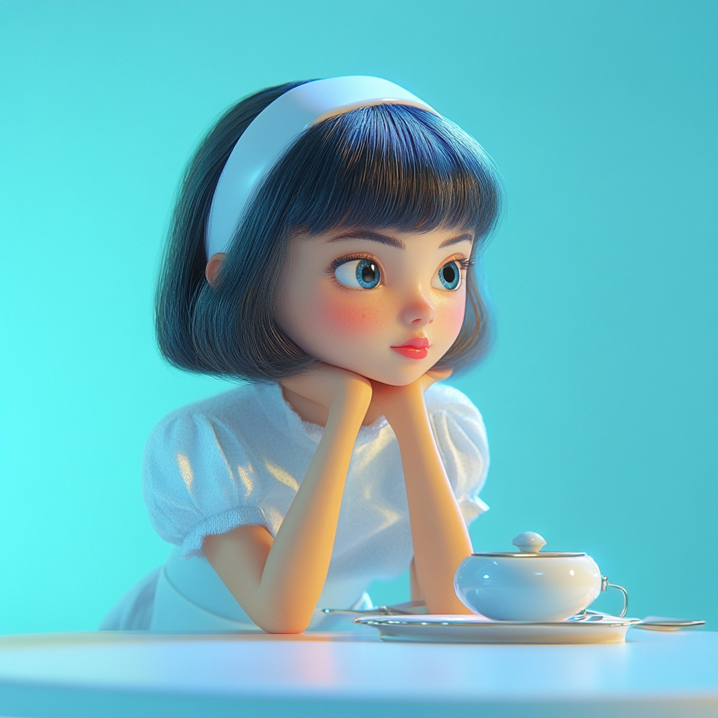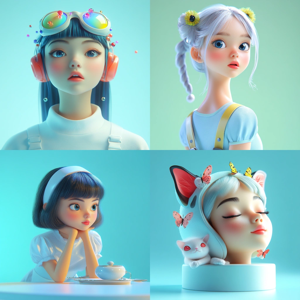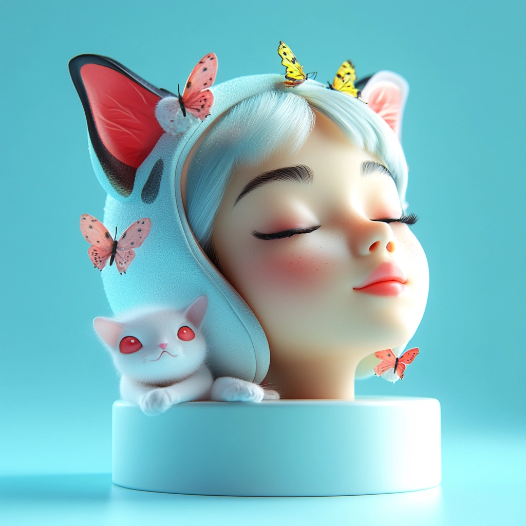Use of gentle lighting creates soft shadows and highlights, emphasizing the smooth textures. The color palette leans towards pastel tones, producing a calm spatial arrangement with a polished surface.