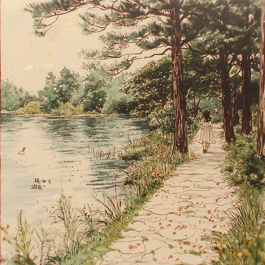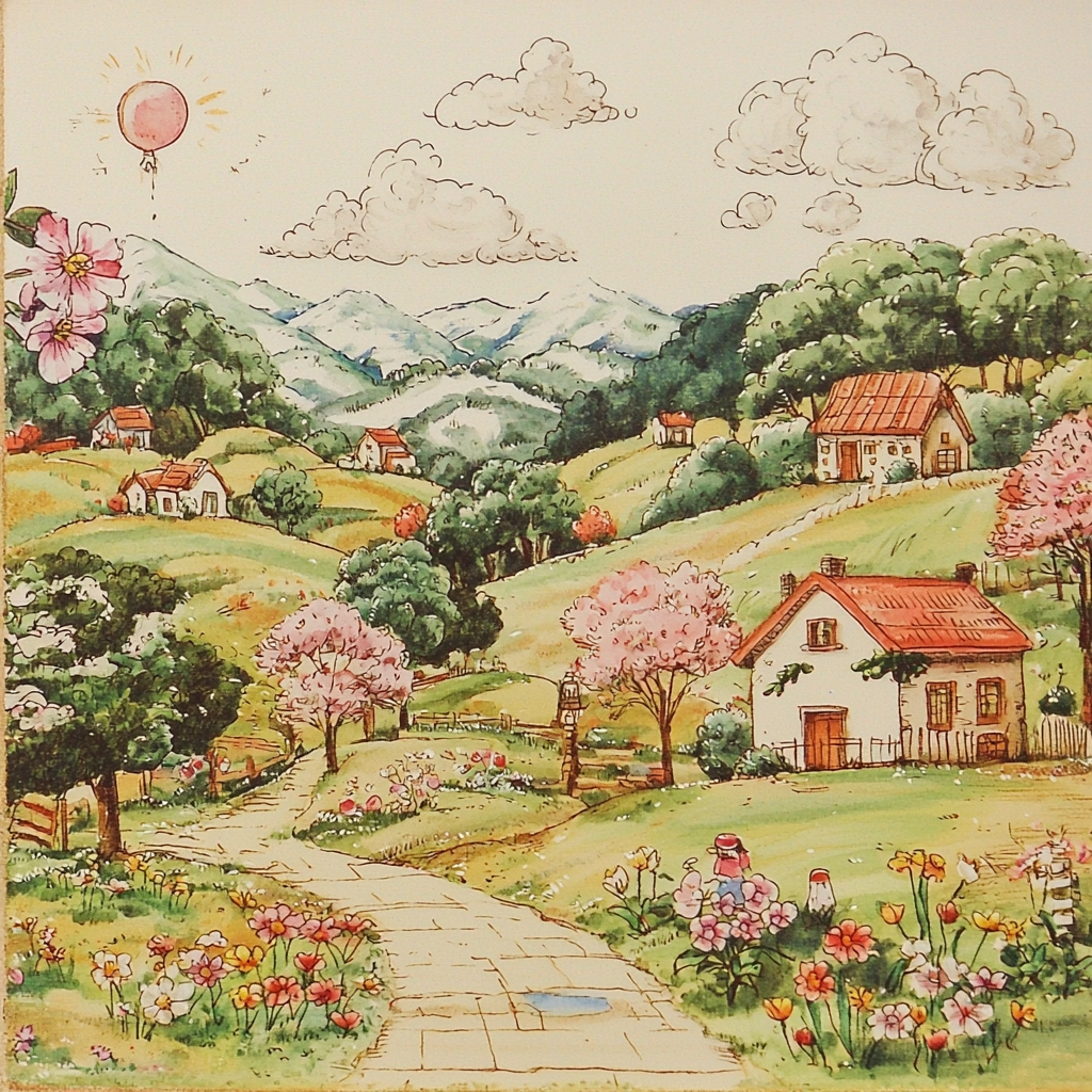 Gentle watercolor with pastel tones creating a nostalgic feel.