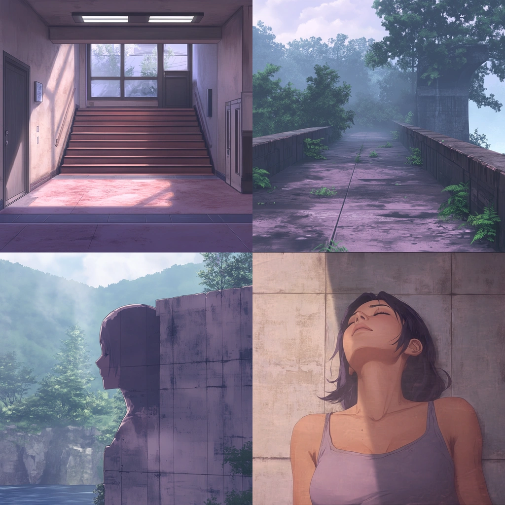 Softly diffused lighting creates a calm atmosphere, enhancing natural shadows. Pastel hues bring a gentle vibrancy contrasted with precise, realistic textures, providing clear spatial definition.