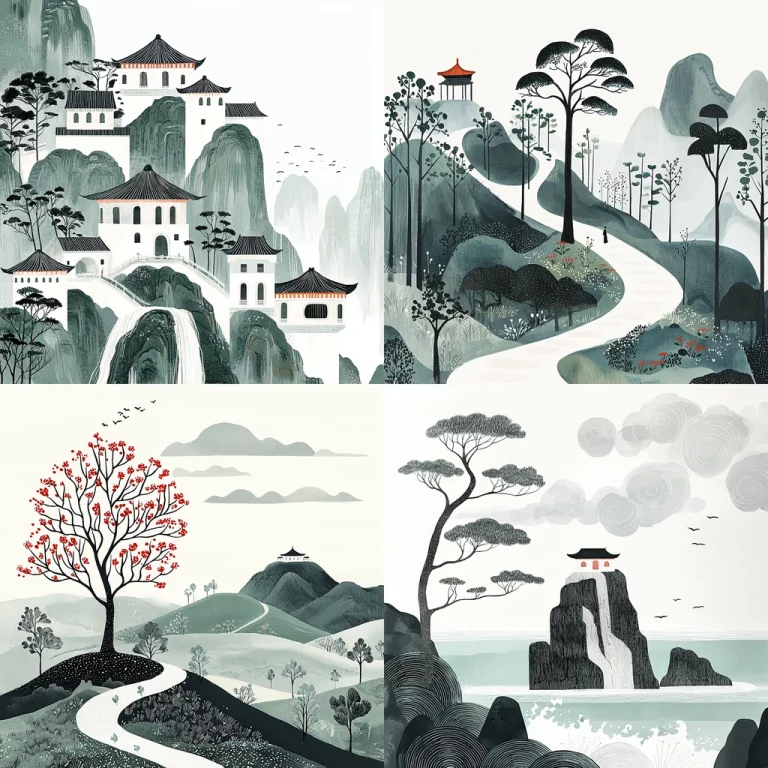 Illustrations feature soft color palettes and simplified forms.