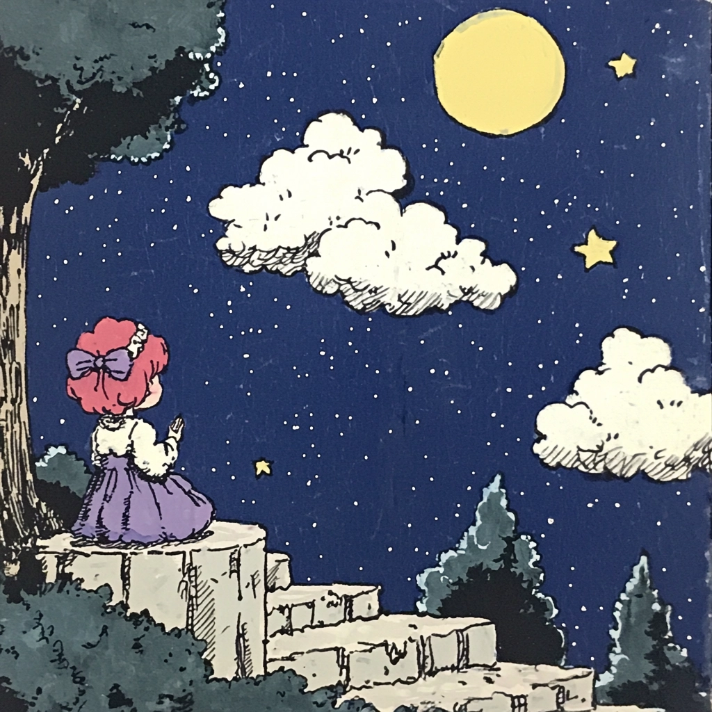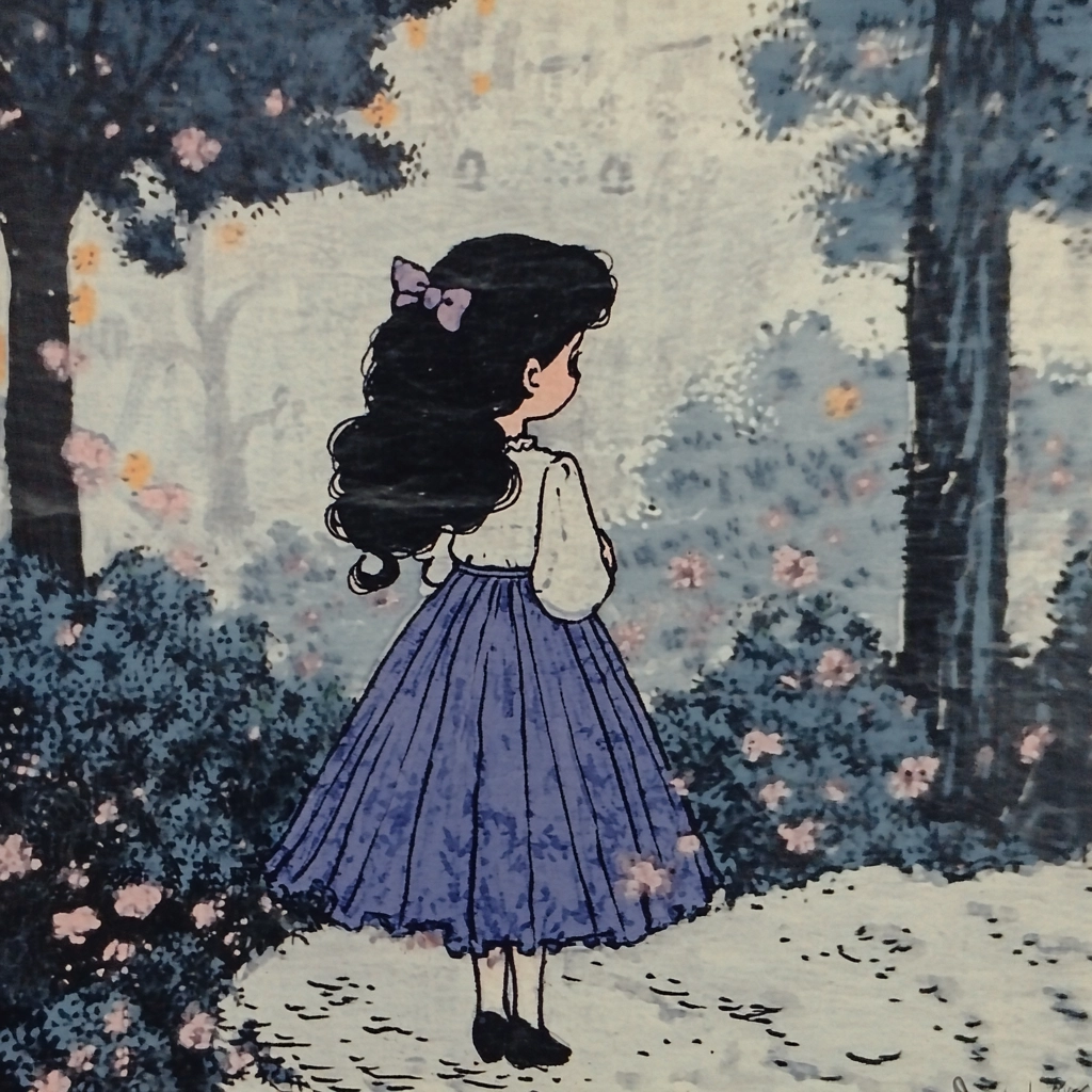 Soft pastel hues characterize a whimsical scene with natural elements and quaint settings.