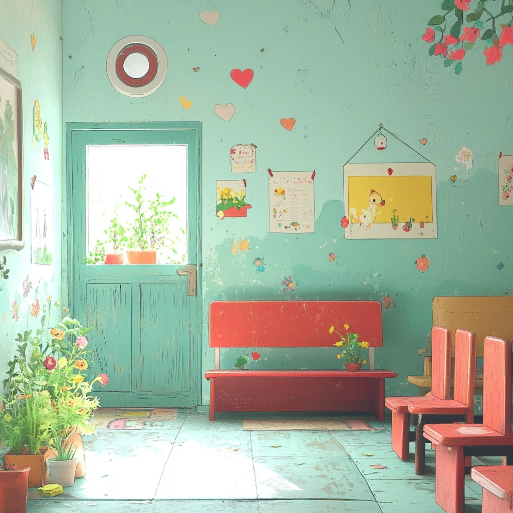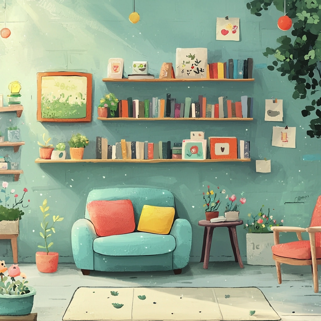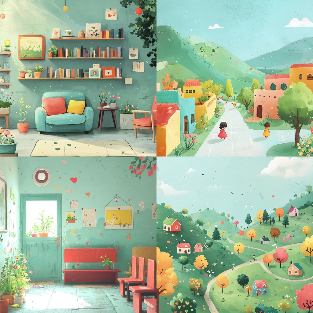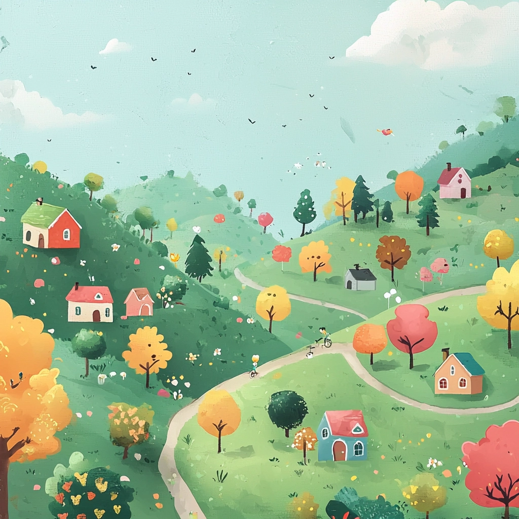 The artwork features gentle lighting effects that enhance the pastel color palette, creating a spacious and open feel. The textures appear smooth and soft, complementing the subtle transitions between elements in the composition.