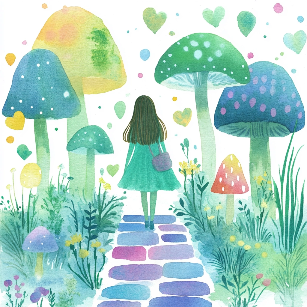 Soft lighting creates a translucent effect, with pastel tones blending seamlessly into each other. Spatial depth is suggested through layered hues and watercolor texture enhancing gentle gradients.