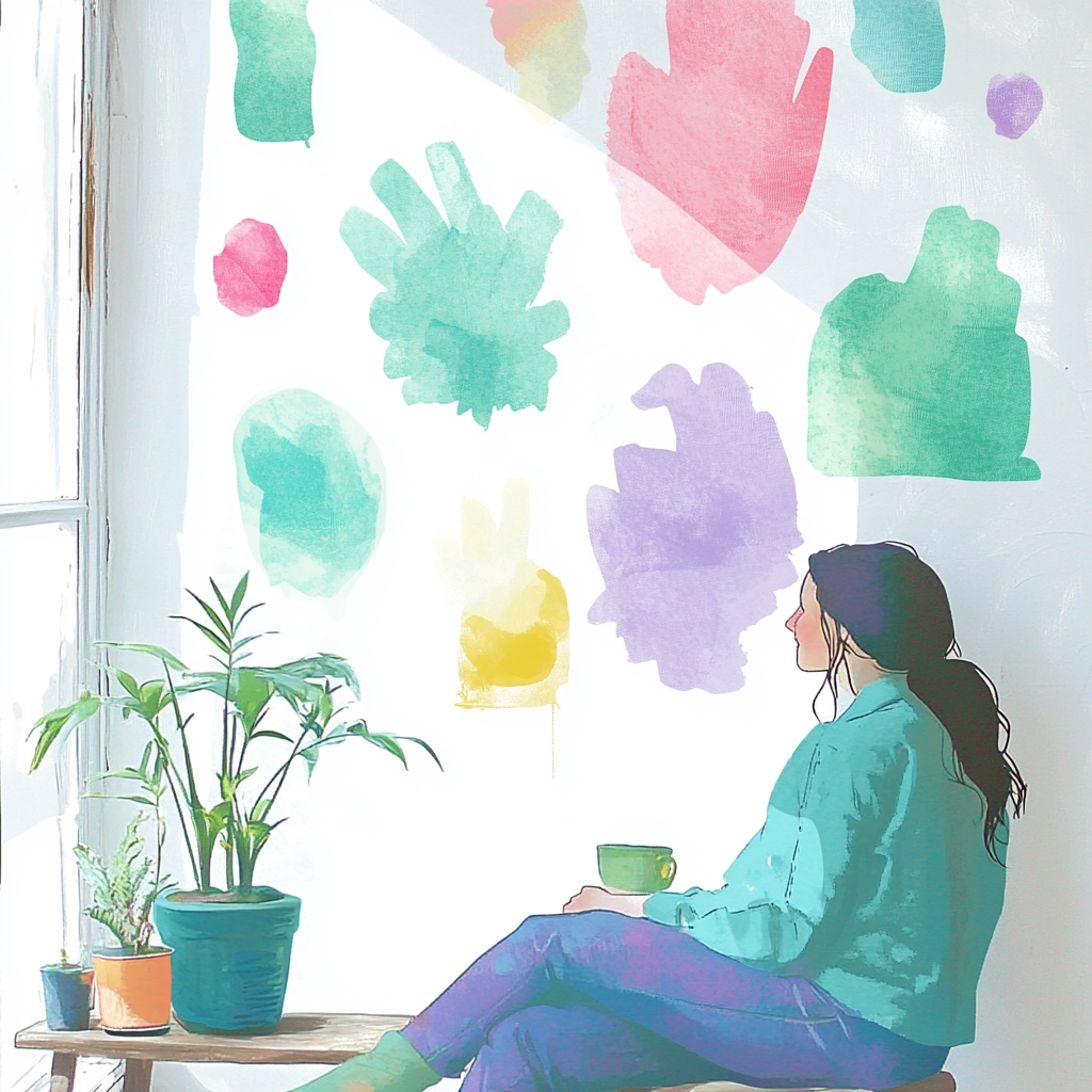 Gentle colors blend with soft contours and subtle elements.