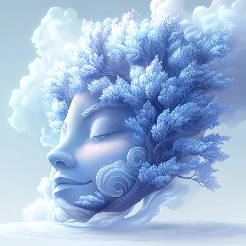 Pastel tones of blue and white create a harmonious and ethereal visual impact.