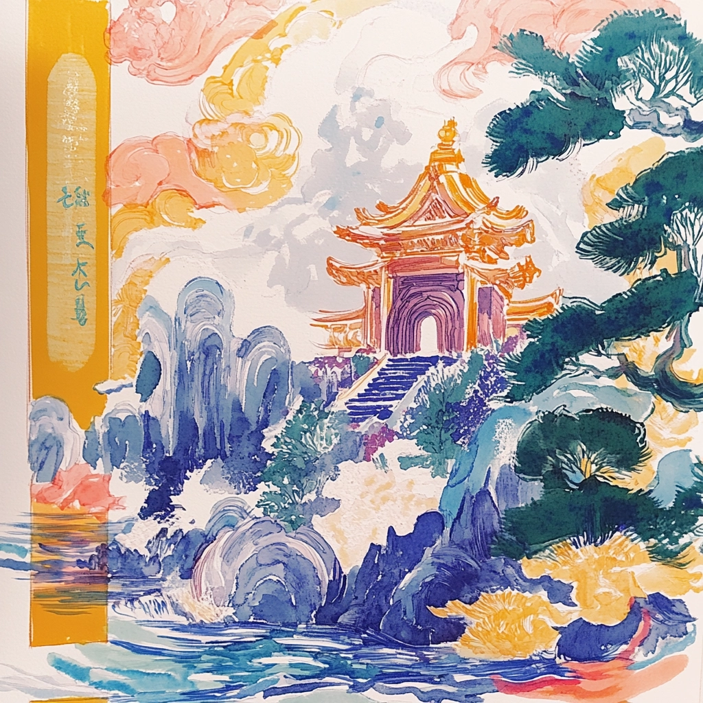 The artwork features energetic lighting effects and complementary colors, highlighting its dynamic spatial layout. Textures are vividly expressed through bold, unrestricted brushstrokes, creating an intricate balance between structure and fluidity.
