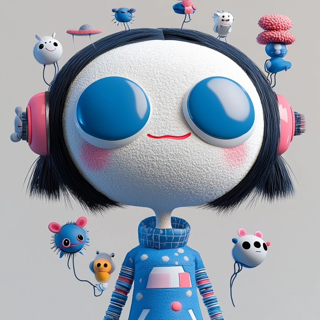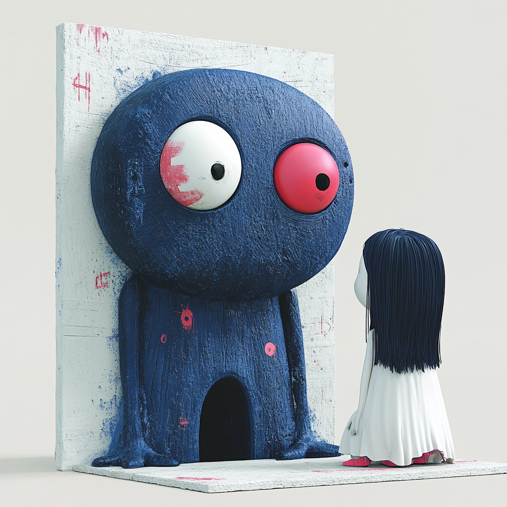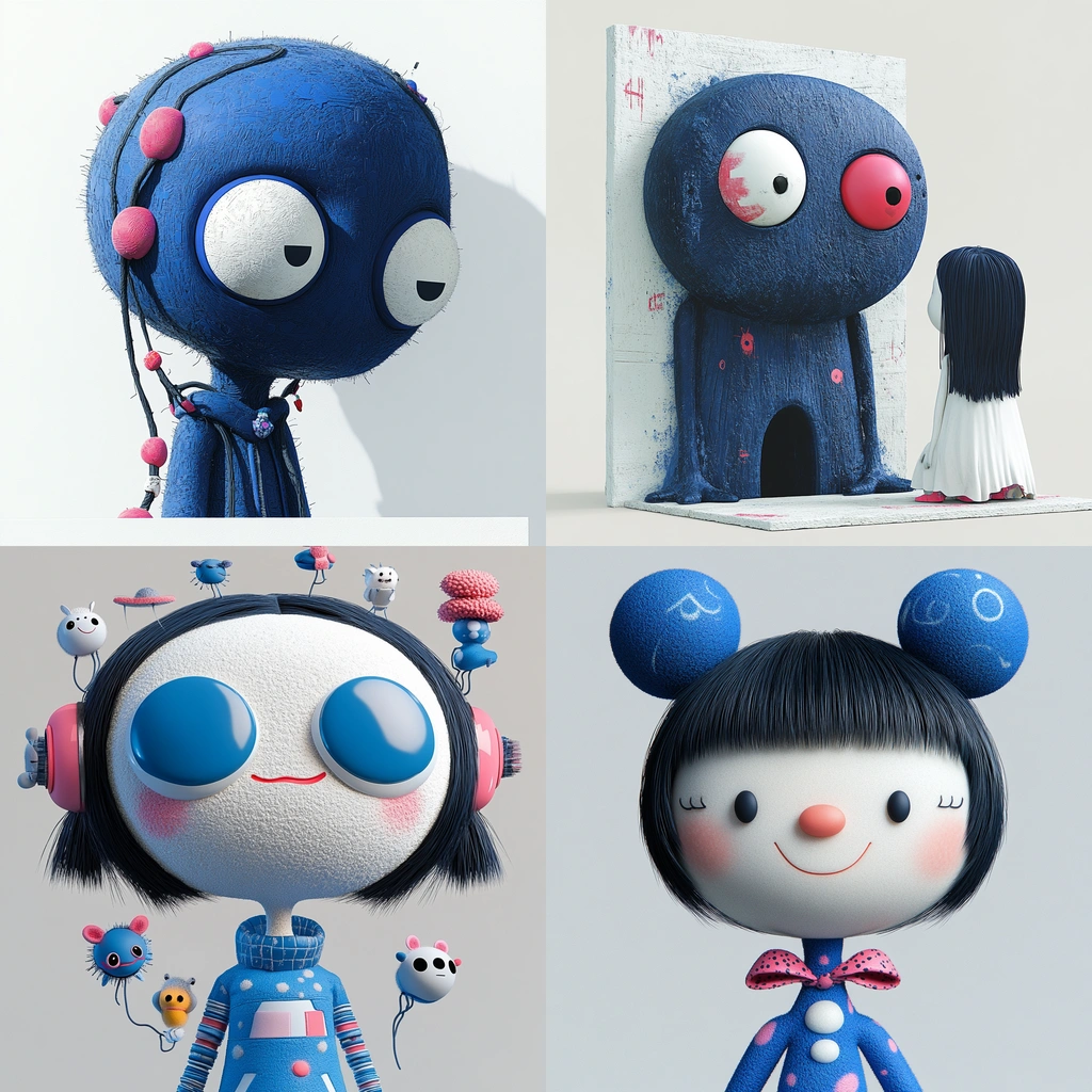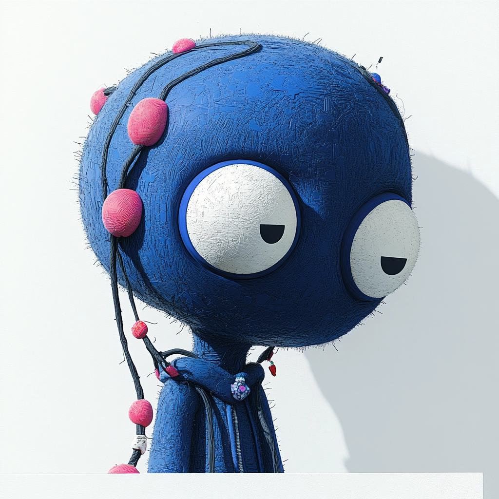The matte textures are enhanced by diffused lighting, lending a tactile character to the predominant blue tones. Variations in shades expand the spatial sense, with subtle pink accents adding contrast and interest.