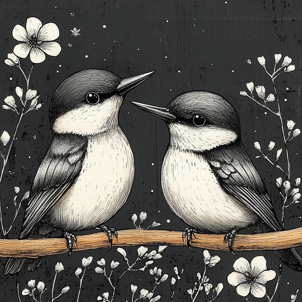 The use of monochrome shading brings depth and clarity to the forms, with a delicate interplay of black lines and beige areas softening the stark contrast. Fine textures enhance the visual clarity, creating a sense of lightness, while lines and shapes interact seamlessly within the compact space.