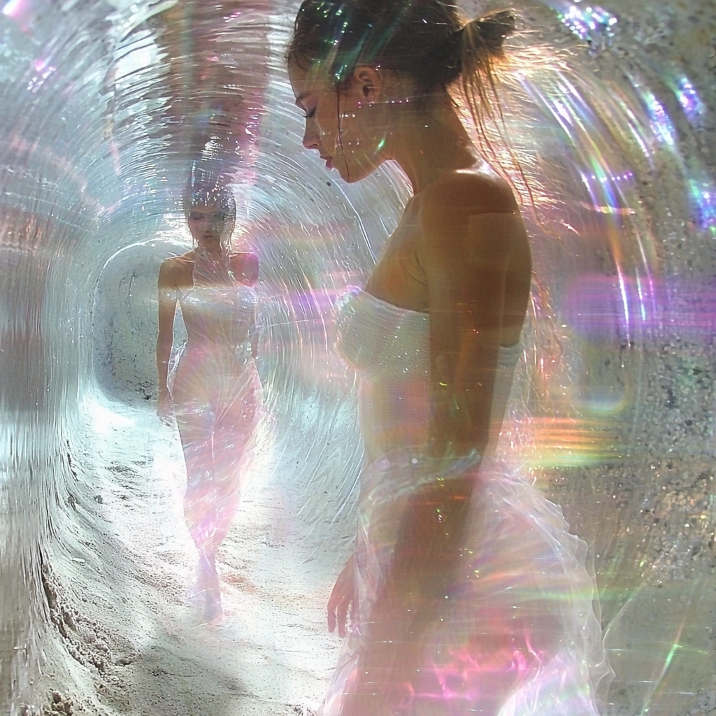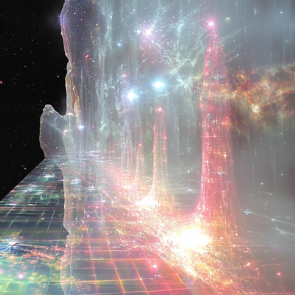 The use of prismatic lighting emits a multitude of colors, creating a sense of depth through intricate, layered reflections and highlights. This effect fosters a feeling of movement and dynamism within the space.