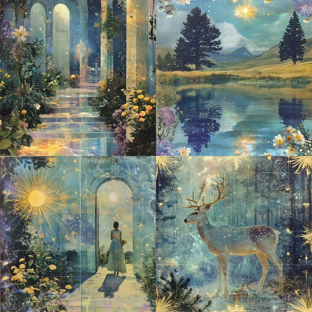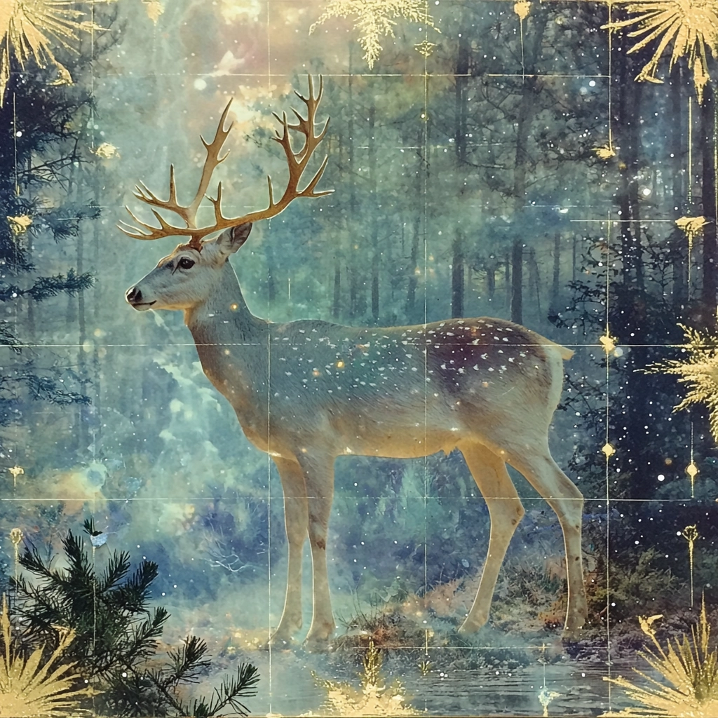 Interplay of luminous effects and deep blue shades creates dimensional depth. Gold accents shimmer across the surfaces, enhancing the naturalistic details. Varied textures hint at subtle gradients, bringing a tactile richness to the visual field.